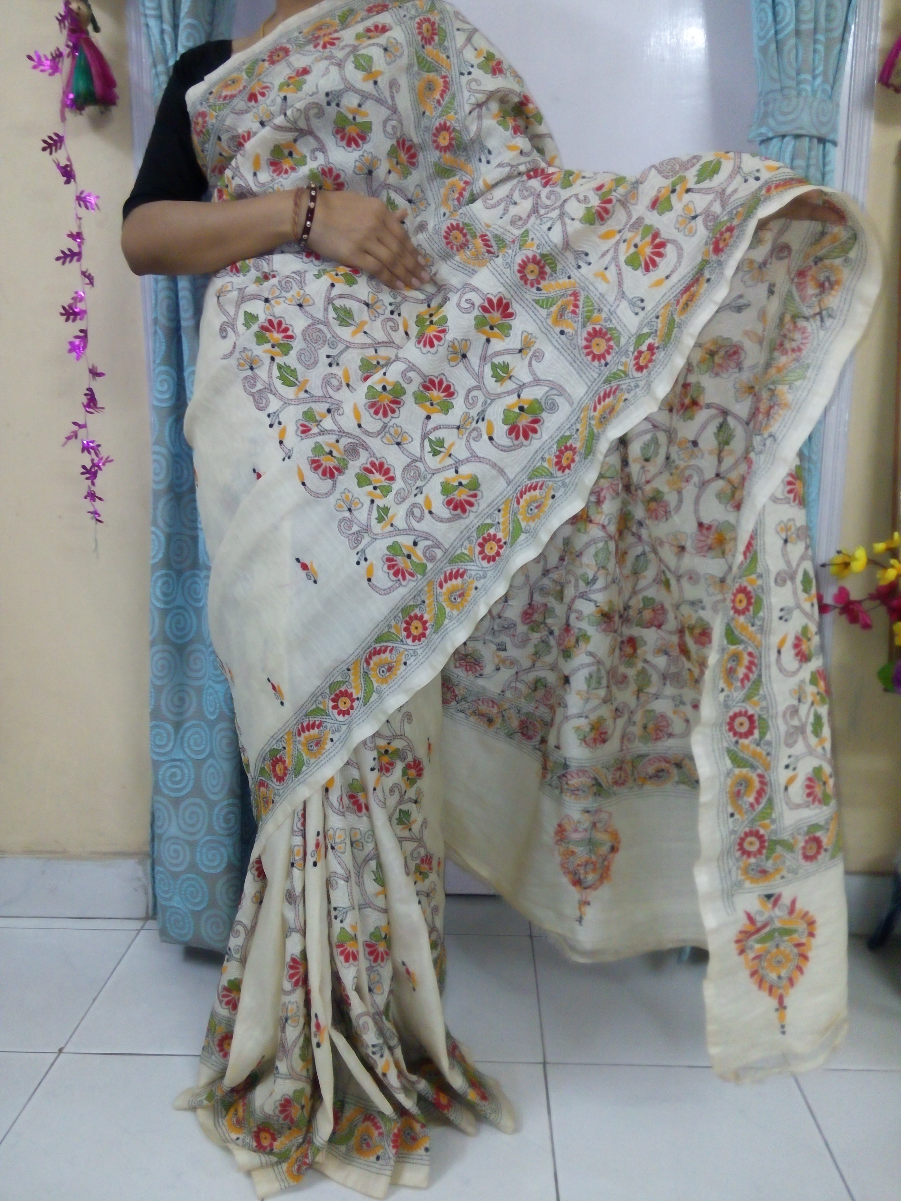 Kantha Work Embroidery Patterns Buy Kantha Stich Off White Saree With Multicolour Gocoop Kantha Work Embroidery Patterns Buy Kantha Stich Off White Saree With Multicolour Gocoop