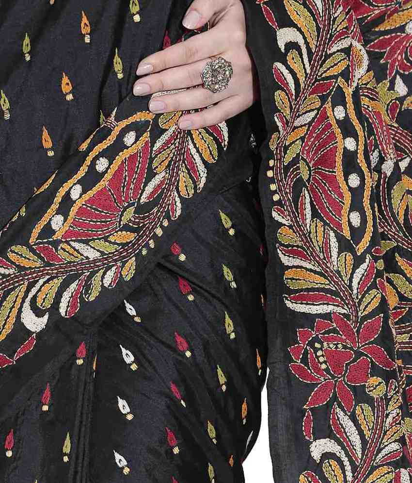 Kantha Work Embroidery Patterns Kantha Stitch Silk Saree With Elaborate Hand Embroidered Aanchal Kantha Work Embroidery Patterns Kantha Stitch Silk Saree With Elaborate Hand Embroidered Aanchal