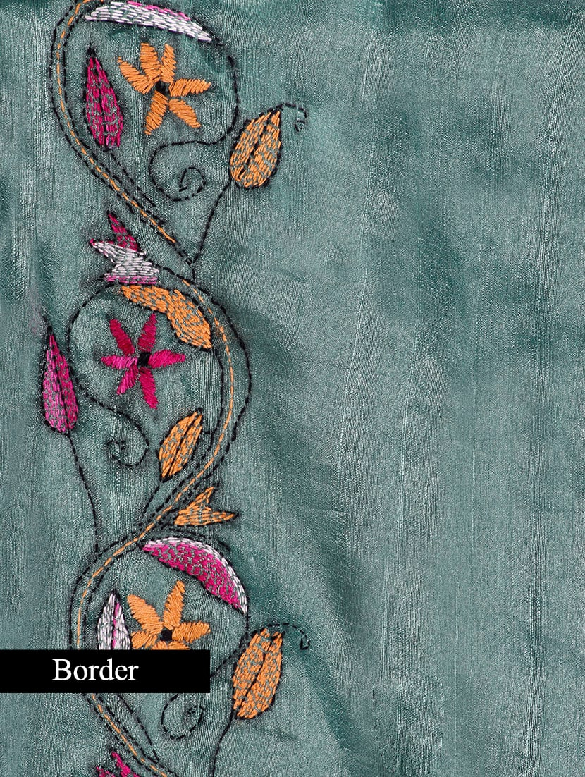 Kantha Work Embroidery Patterns Kantha Embroidered Teal Green Silk Saree Kantha Work Embroidery Patterns Kantha Embroidered Teal Green Silk Saree
