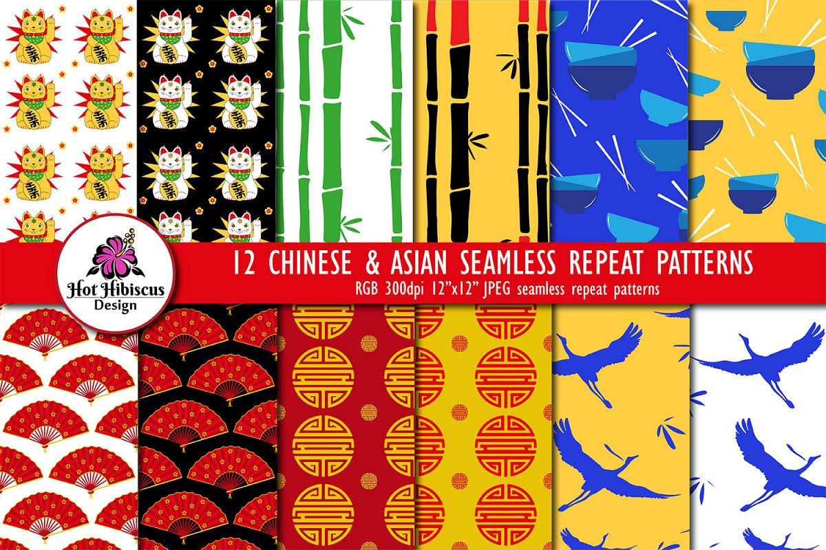Asian Embroidery Patterns 12 Chinese Asian Seamless Repeat Pattern Digital Papers