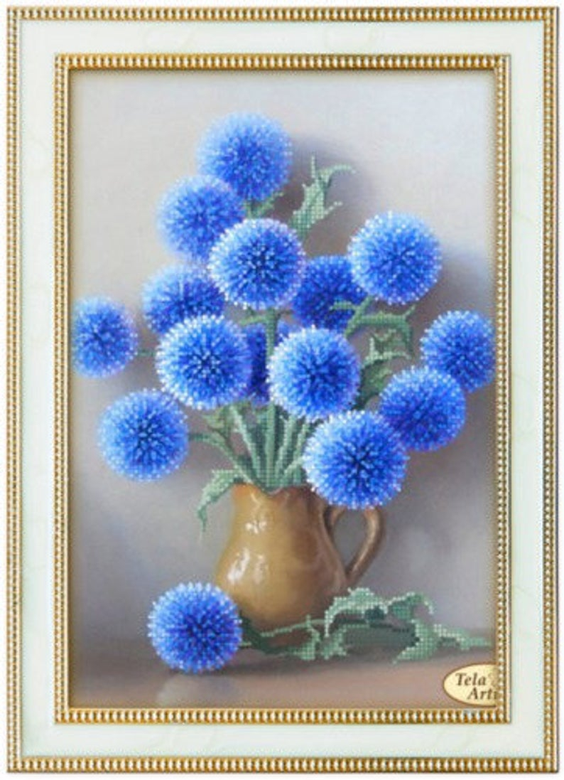 Bead Embroidery Patterns Blue Flowers Diy Bead Embroidery Kit Embroidery Patterns Bead Kit 24×31 Cm Room Decor Housewarming Gift