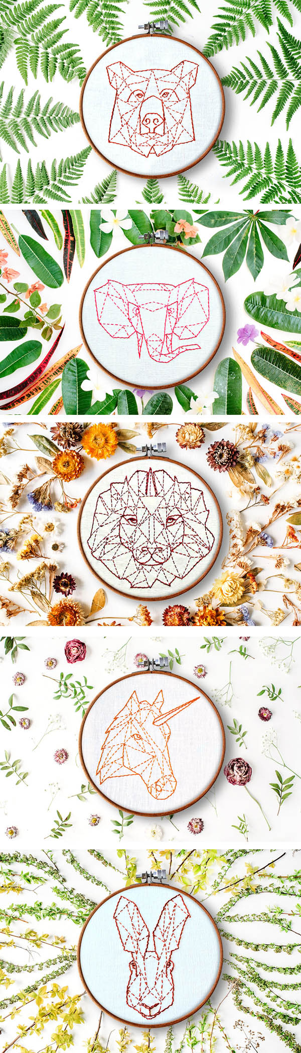Beginner Embroidery Patterns 5 Geometric Animals Embroidery Pattern Bundle Pumora