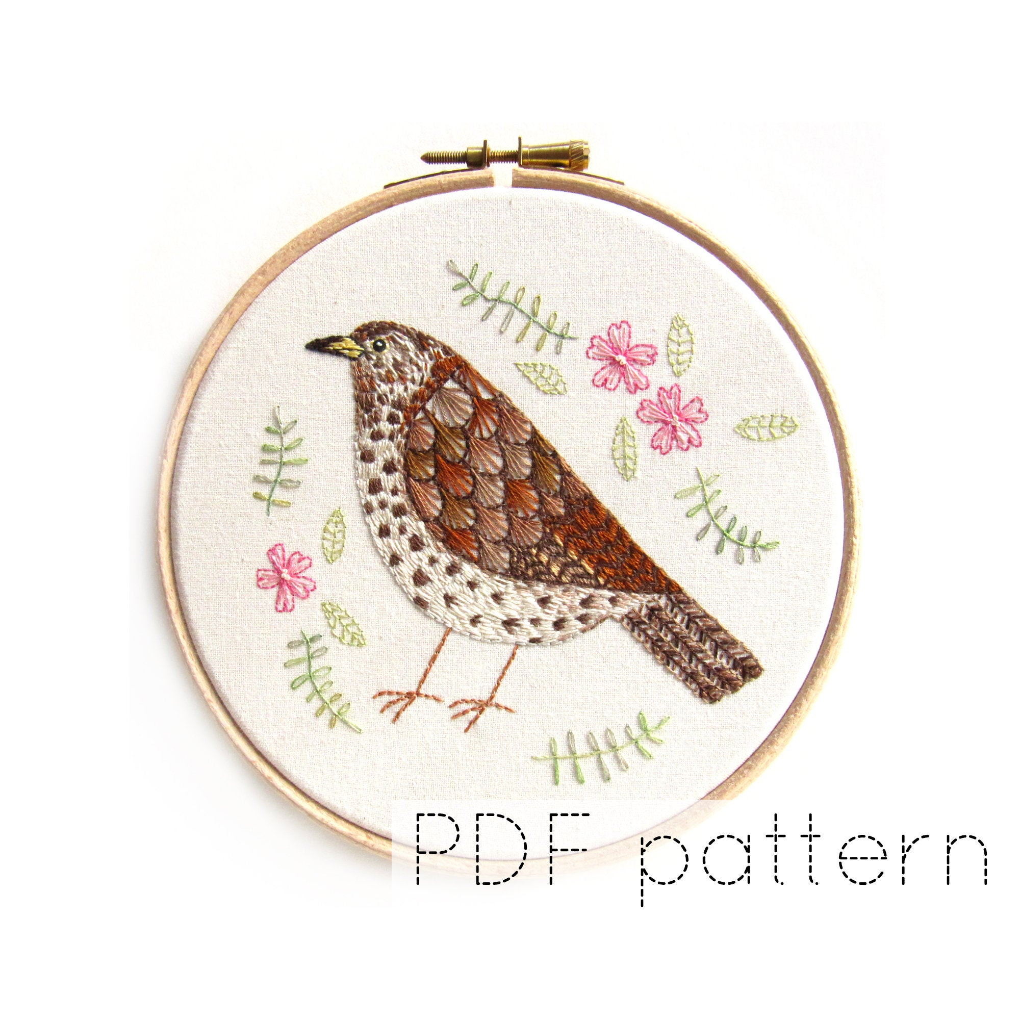 Bird Embroidery Pattern Song Thrush Bird Embroidery Pattern Instant Download Bird Embroidery Pattern Song Thrush Bird Embroidery Pattern Instant Download