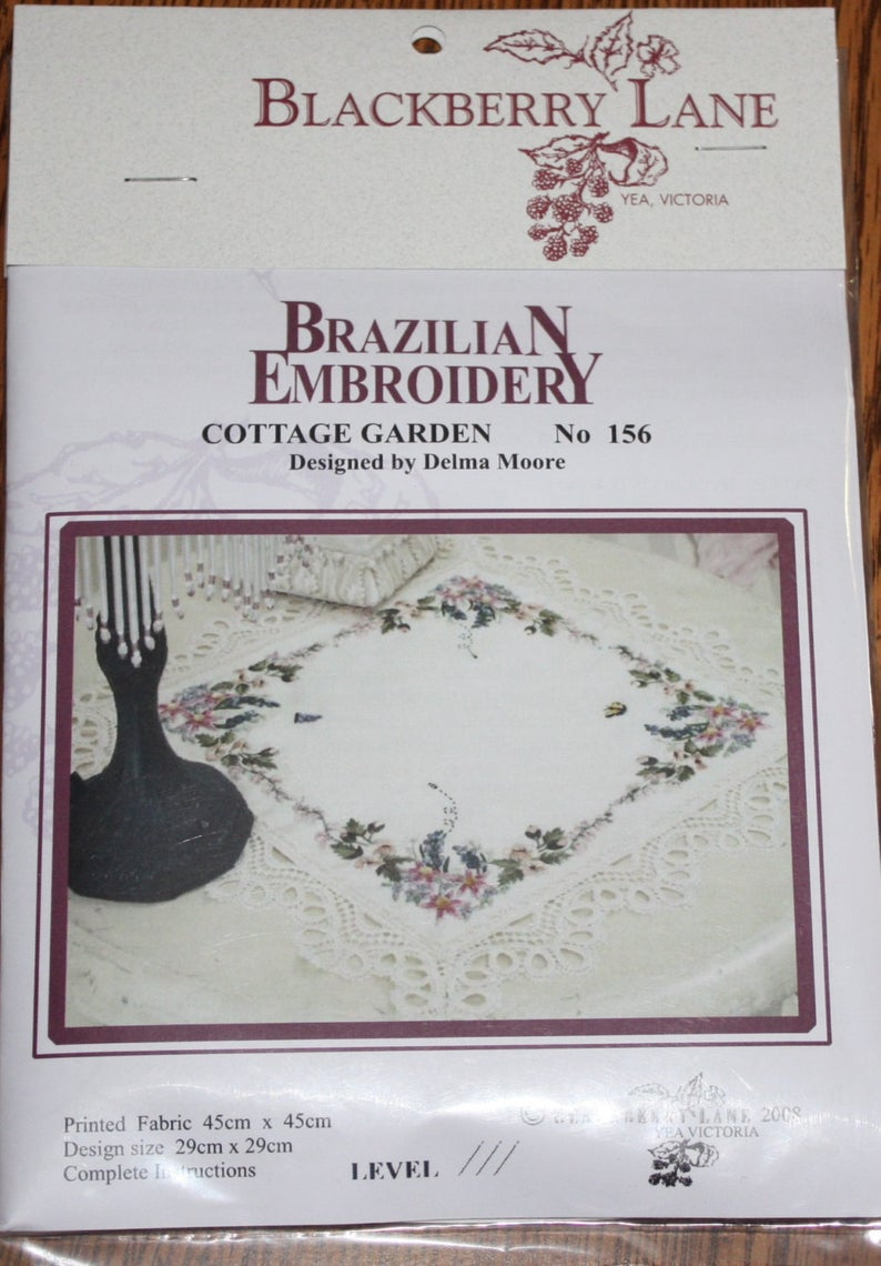Brazilian Embroidery Patterns Blackberry Lane Brazilian Embroidery Patternkit 156 Cottage Garden Full Skeins Of Edmar Thread Fabric Instructions Delma Moore