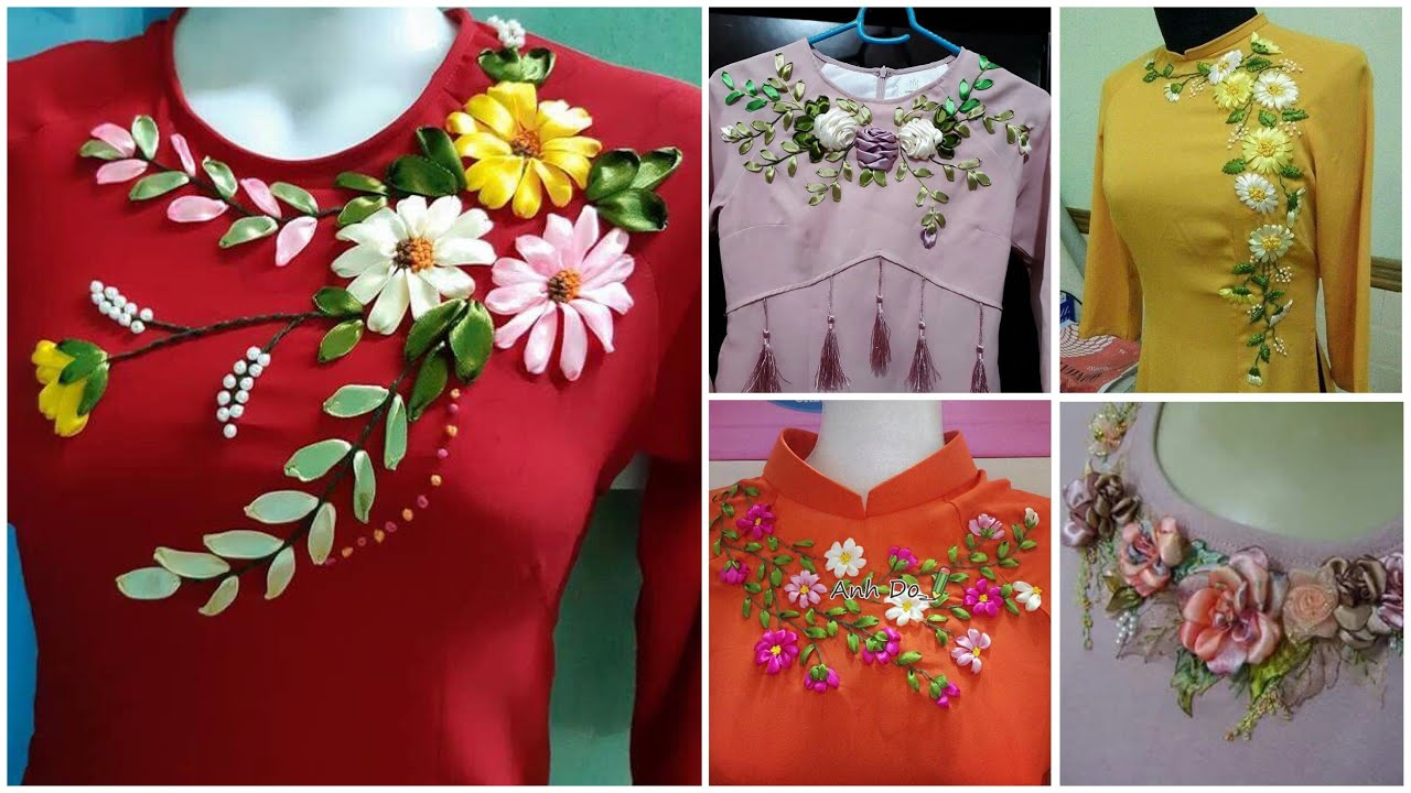 Embroidery Dress Patterns Satin Ribbon Embroidery Pattern Satin Ribbon Embroidery Ideas Ribbon Flower Work On Top