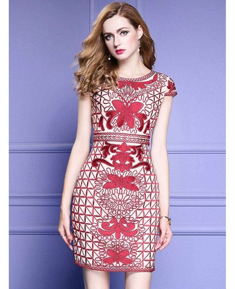Embroidery Dress Patterns Unique Embroidery Pattern Bodycon Wedding Guest Dress With Cap Sleeves Zl8038 Gemgrace