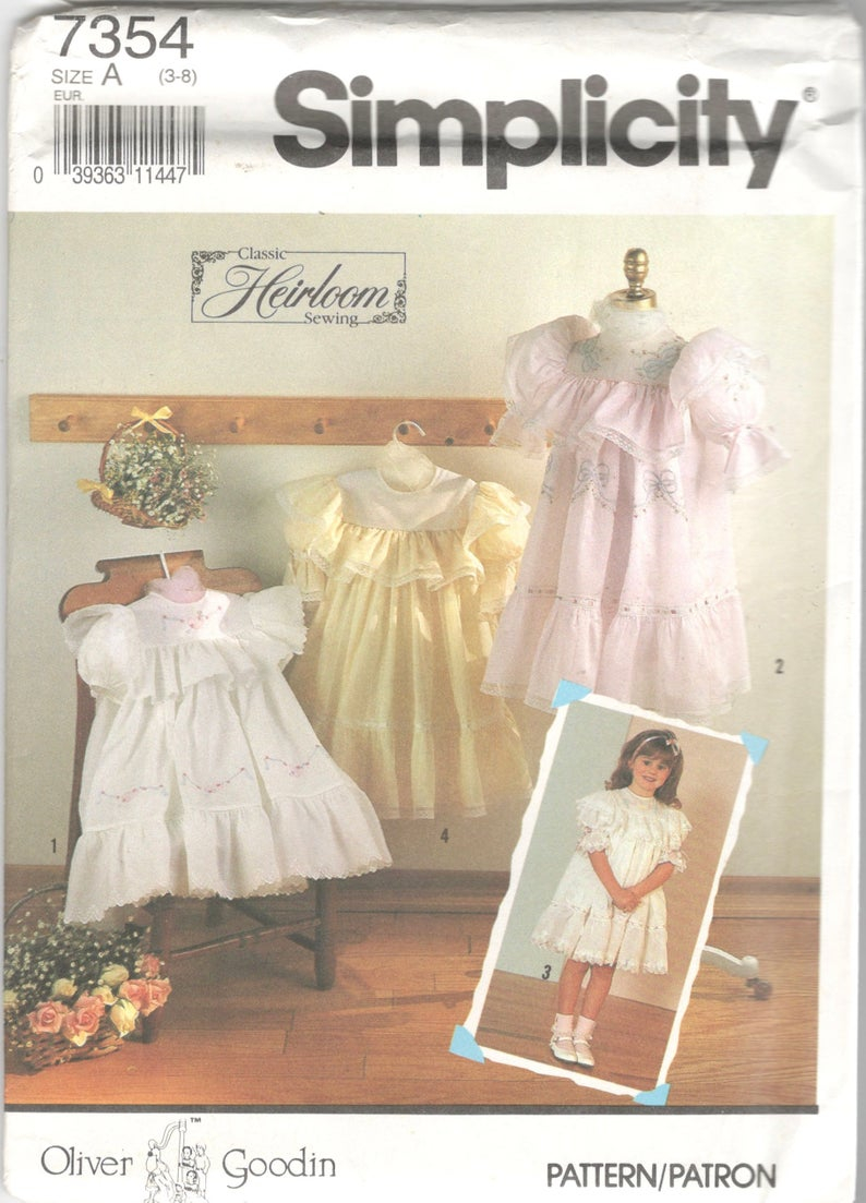 Embroidery Dress Patterns Simplicity 7354 Oliver Goodin Childs Heirloom Dress Pattern Shadow Embroidery Girls Toddlers Dress Pattern Size 3 4 5 6 7 8 B 22 27 Uncut