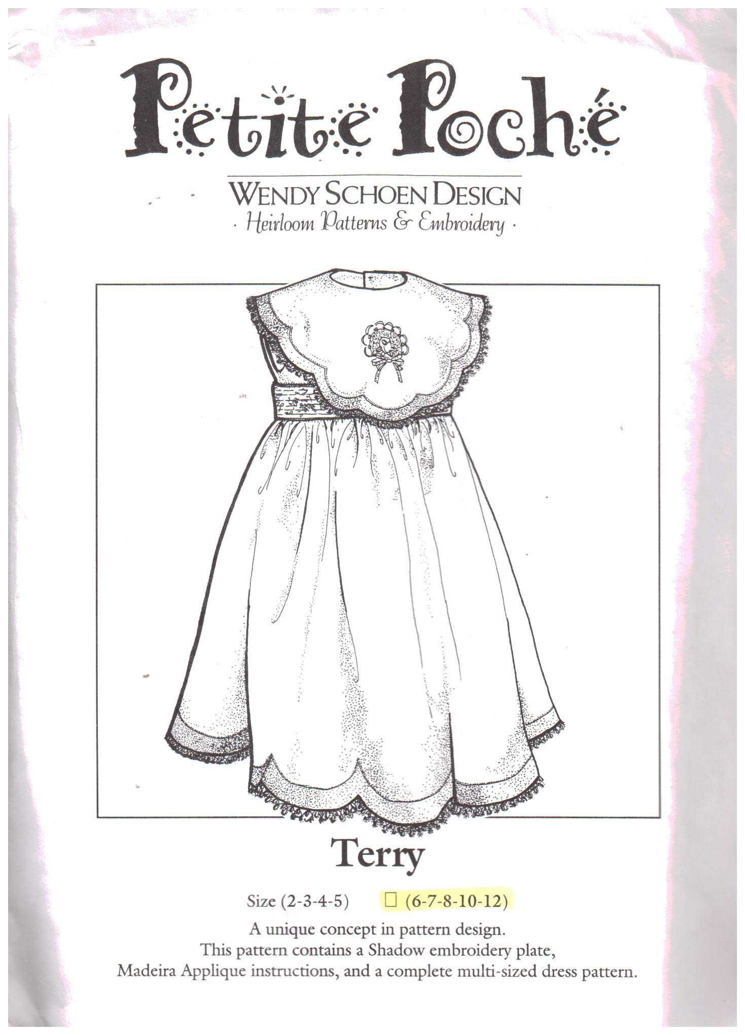 Embroidery Dress Patterns Petite Poche Terry Dress Heirloom Patterns Embroidery Wendy Schoen Size 6 7 8 10 12 Uncut Sewing Pattern