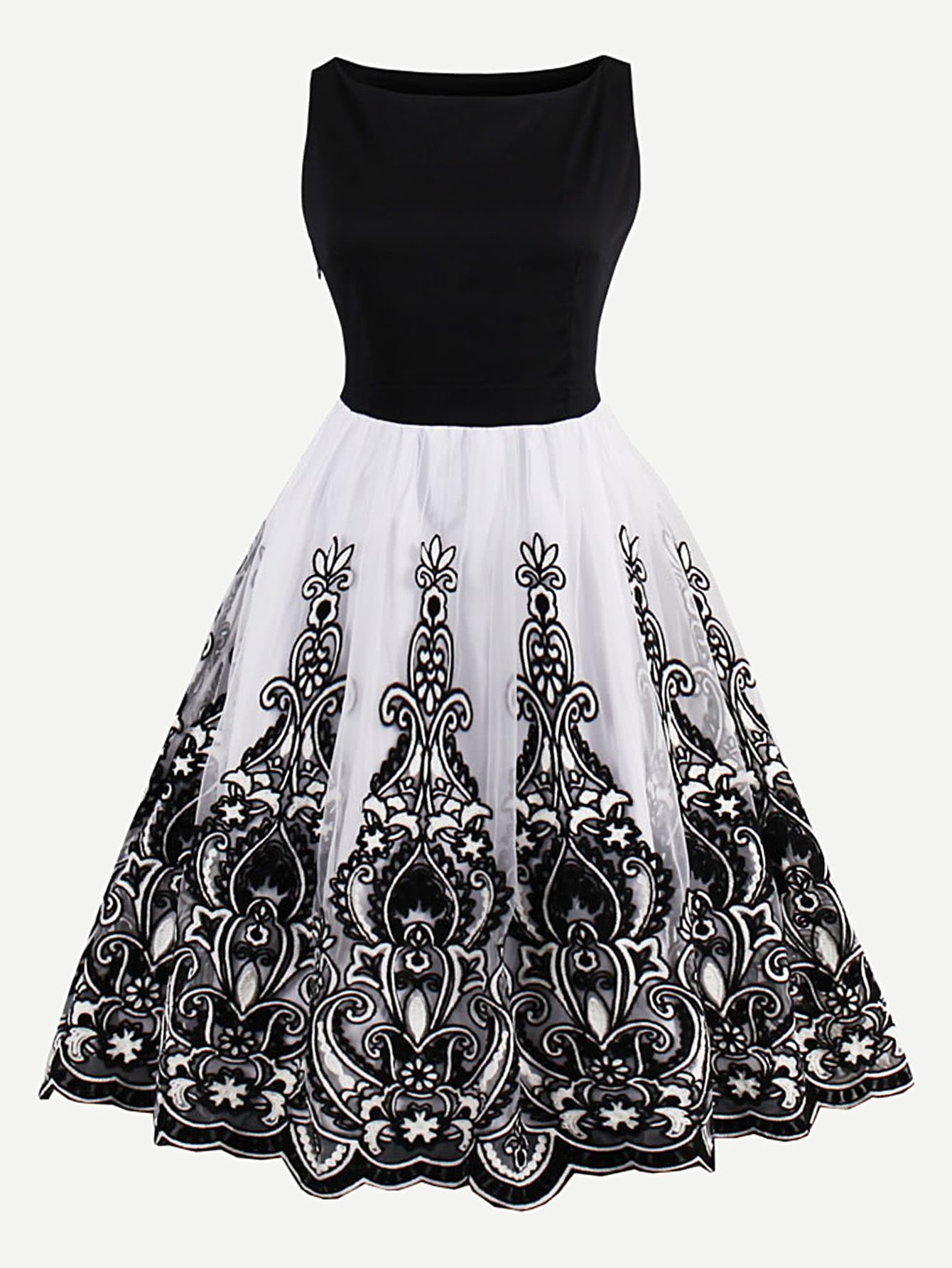 Embroidery Dress Patterns Flower Embroidered Mesh Overlay Combo Dress