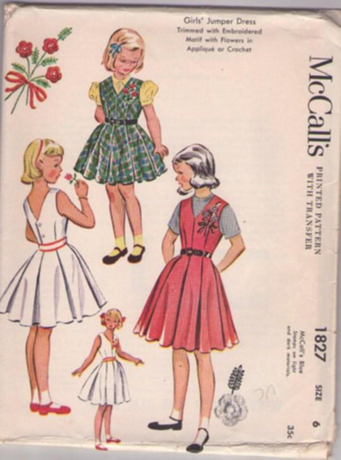 Embroidery Dress Patterns Mccalls 1827 Vintage 50s Sewing Pattern Sweet Girls Modest School Days V Neck Summer Jumper Box Pleats Skirt Dress With Embroidery Transfer Size 6