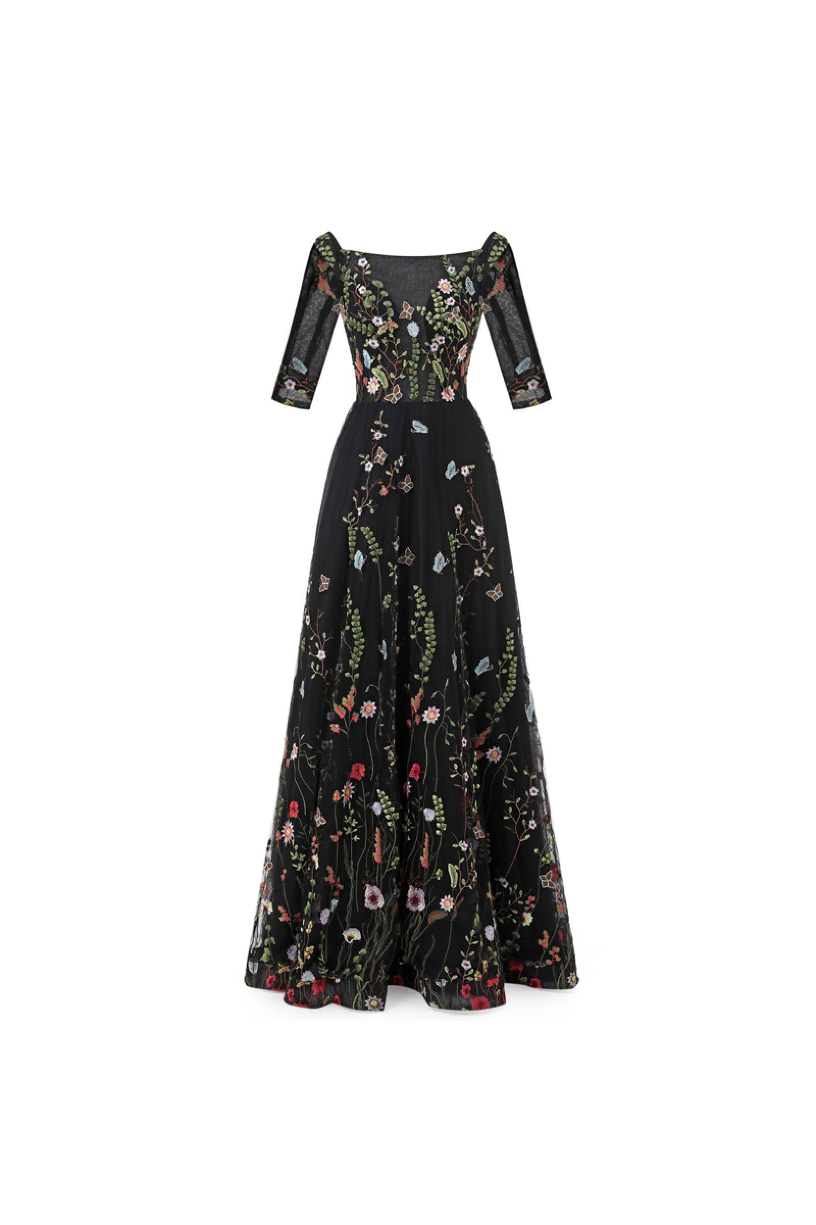 Embroidery Dress Patterns Vintage Flower Embroidery Tulle See Through Dress