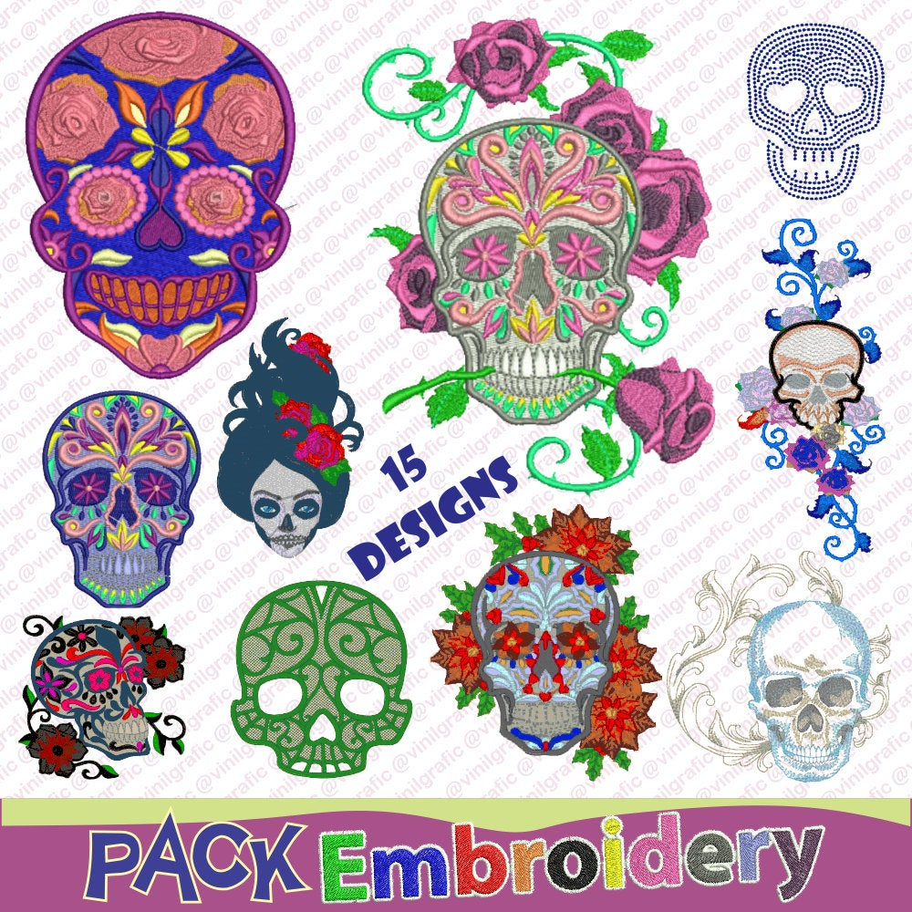 Brother Embroidery Machine Patterns Mexican Skulls V2 15 Designs For Embroidery Machine Brother Patterns Kit Sew Emb Hus Jef Pes Dst With Resizer Converter Software Included