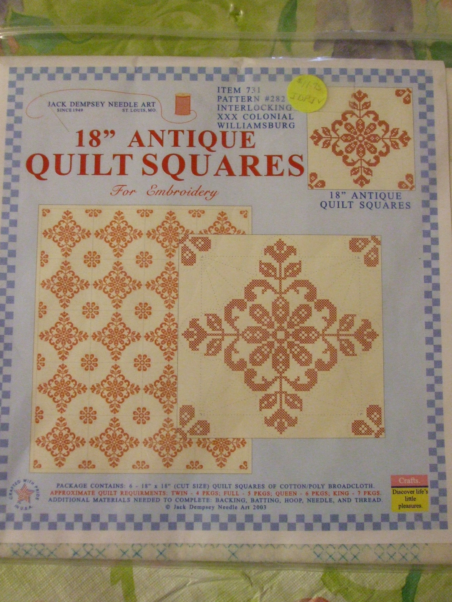 Colonial Embroidery Patterns Quilt Blocks Preprint Embroidery Patterns 18in X 6 Pce Cotton Poly Broadcloth Jack Dempsey