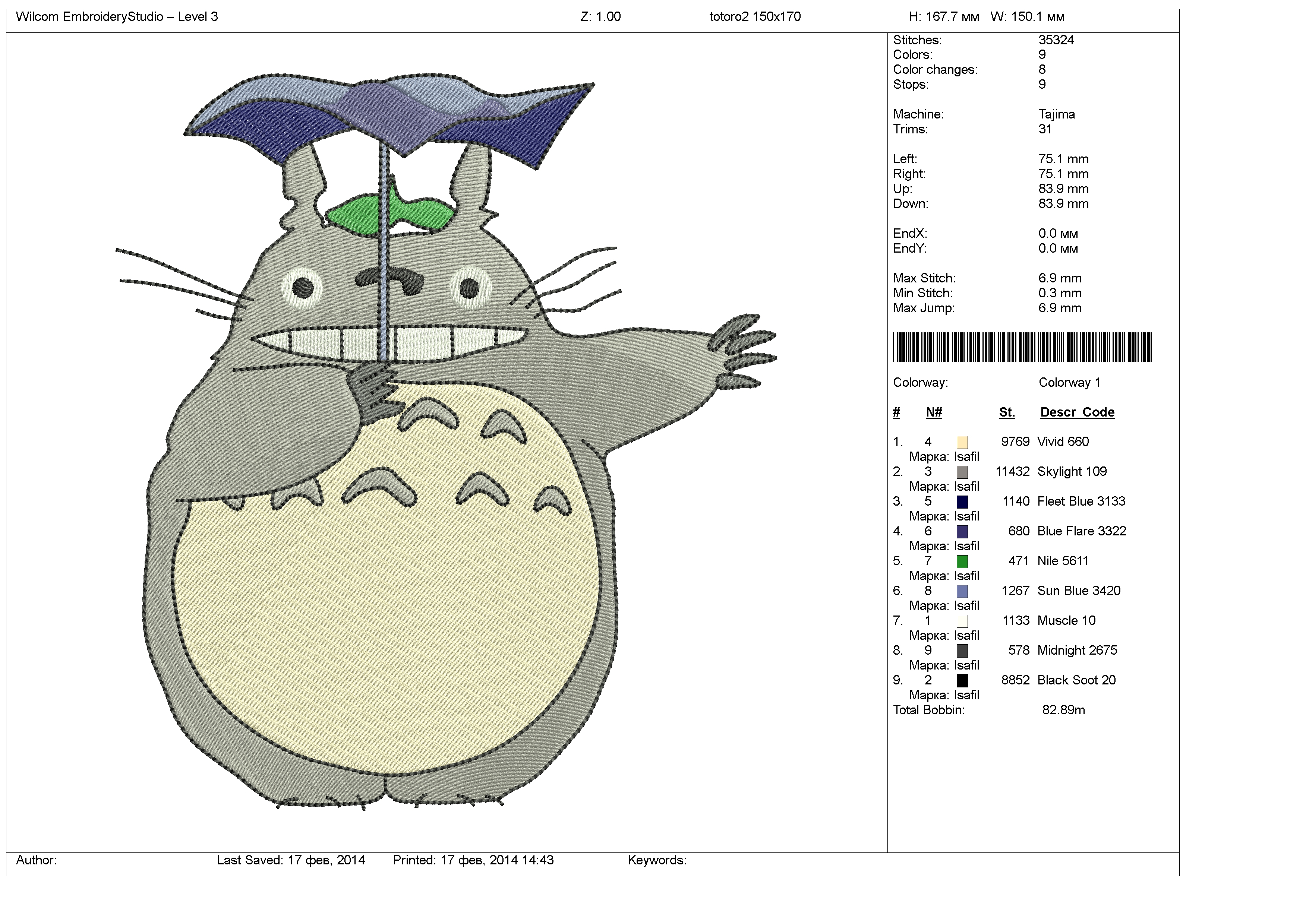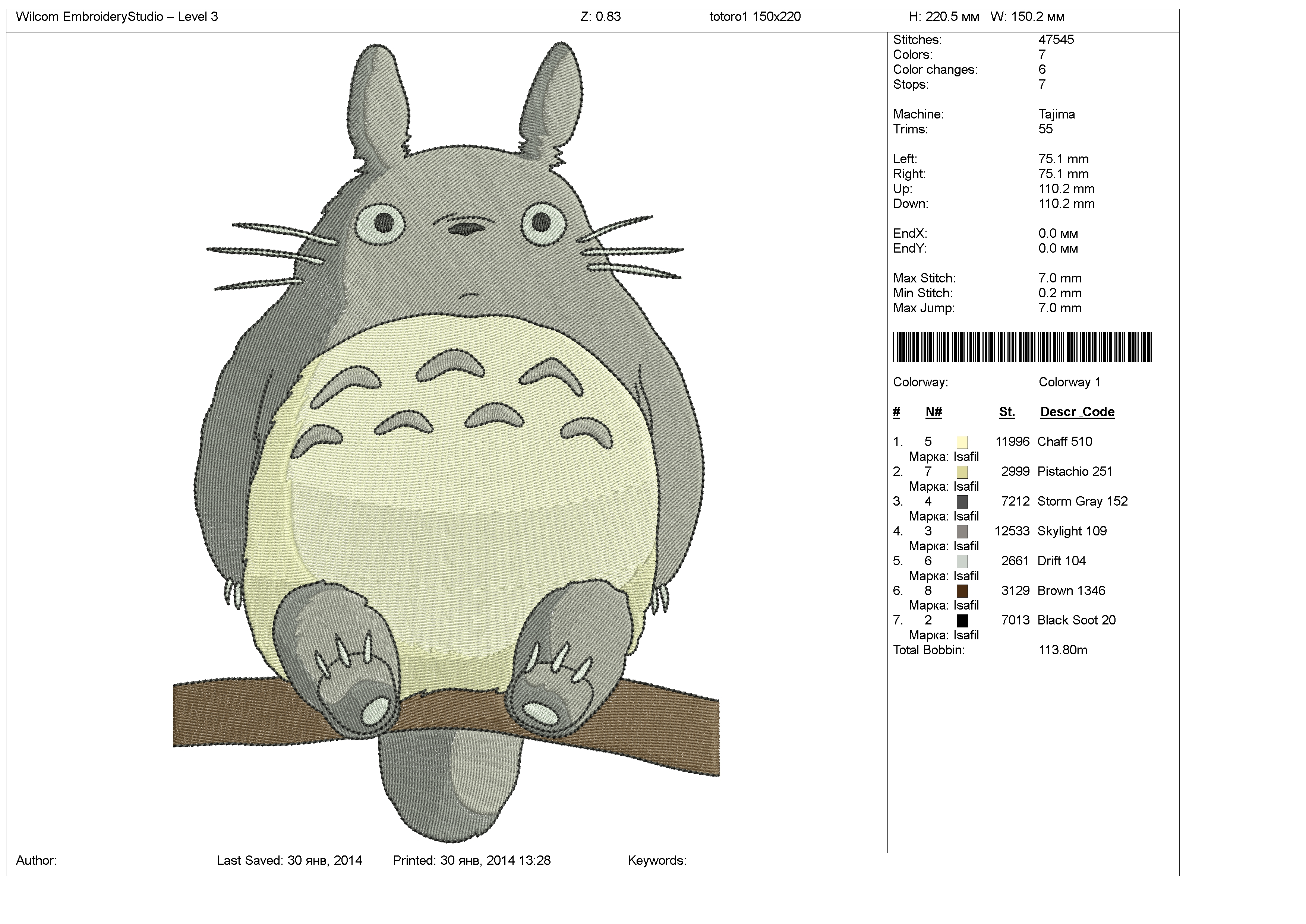 Totoro Embroidery Pattern Totoro Body Graph And Written 150×175