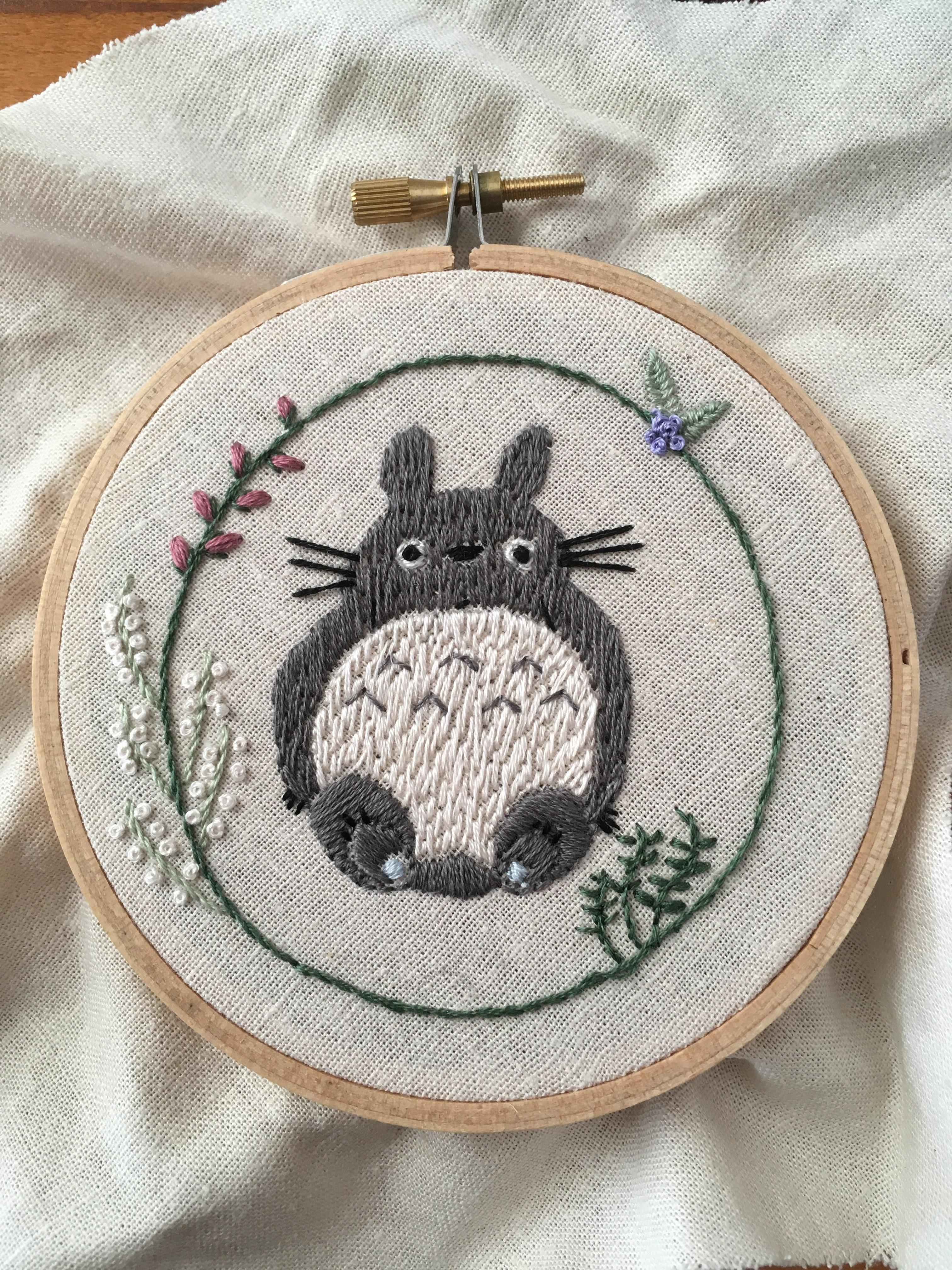 Totoro Embroidery Pattern Totoro Need To Add Some More Floral Elements But Happy With It So