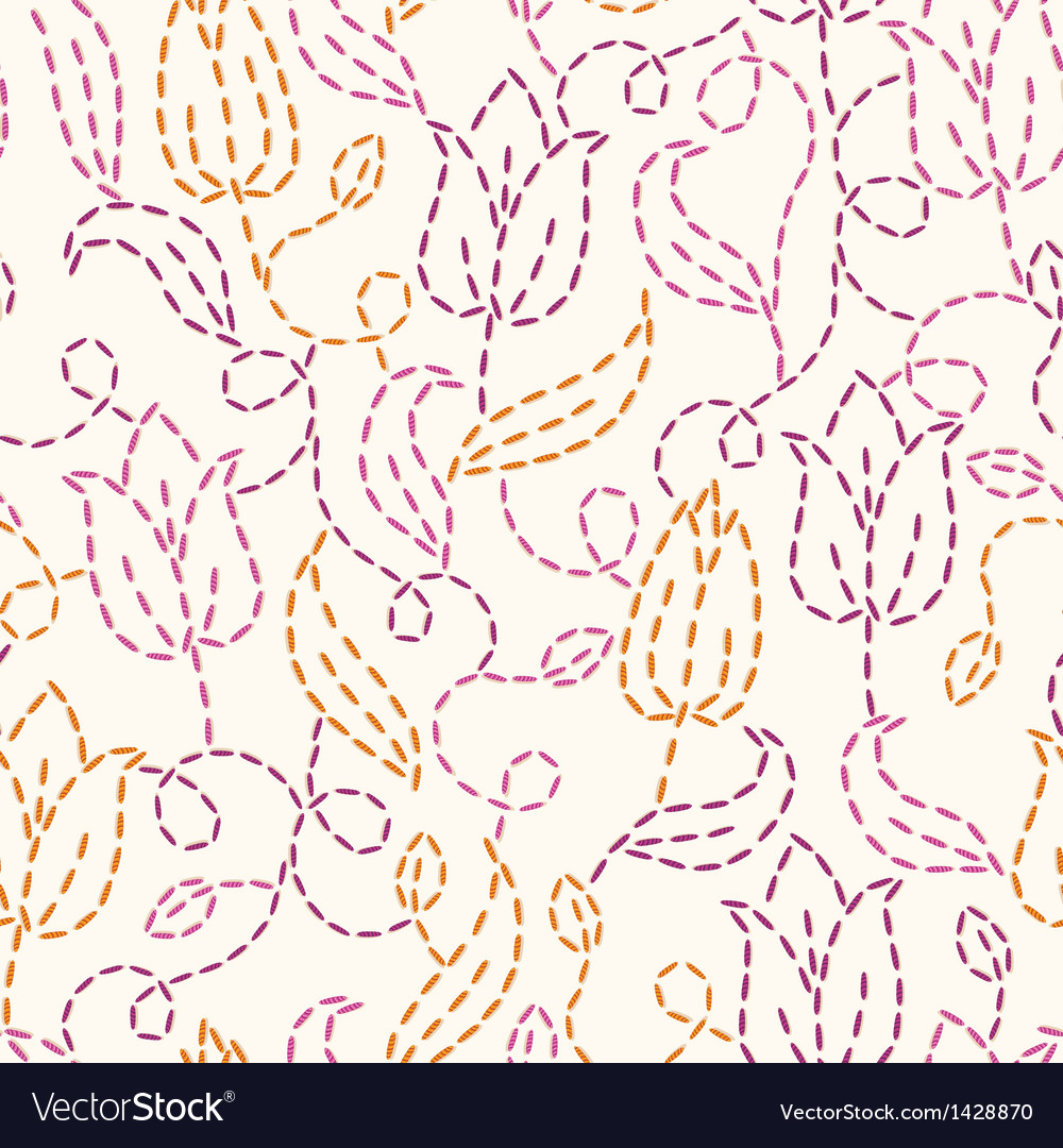 Embroidery Flower Pattern Seamless Pattern Of Embroidered Flowers On White