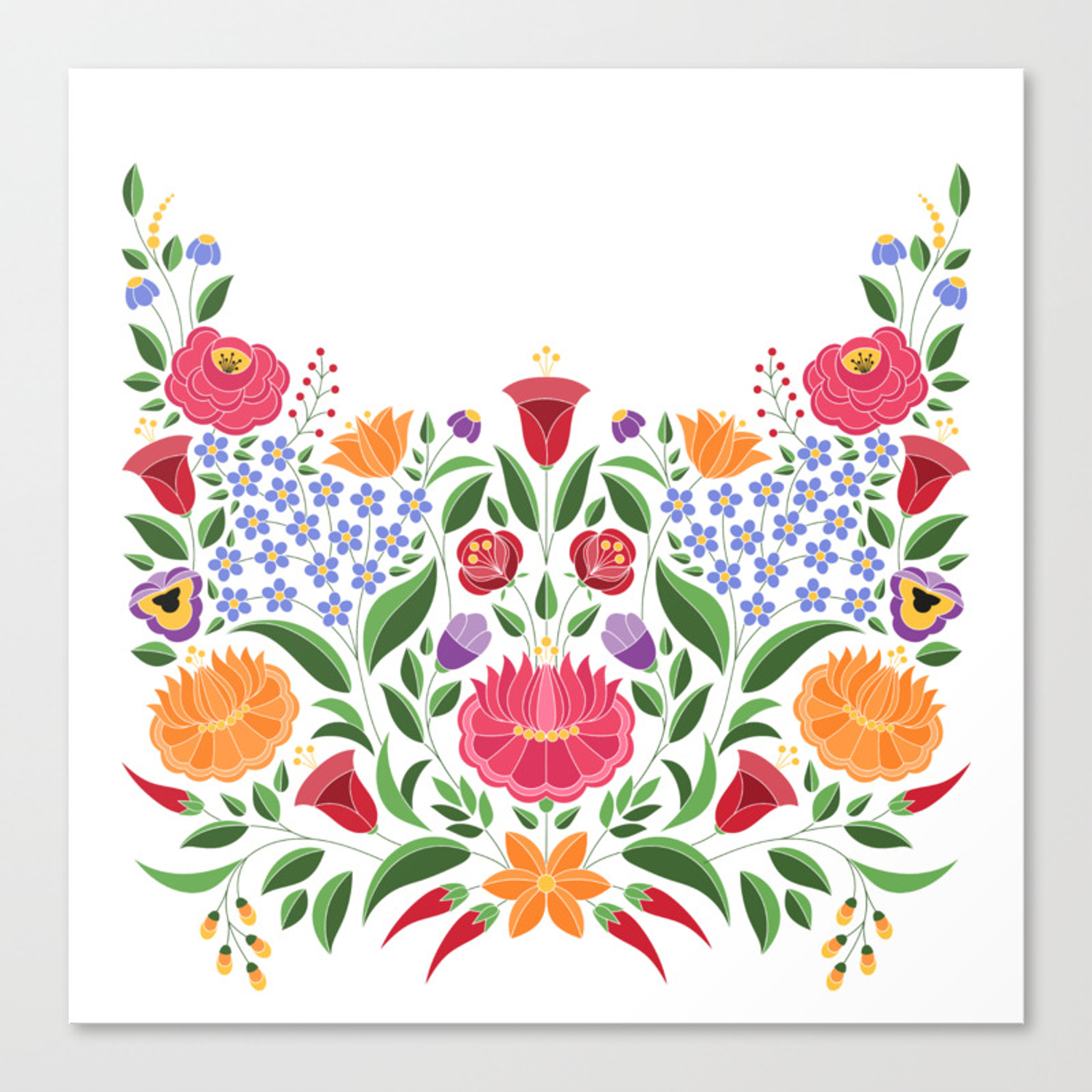 Embroidery Flower Pattern Hungarian Folk Pattern Kalocsa Embroidery Flowers Canvas Print
