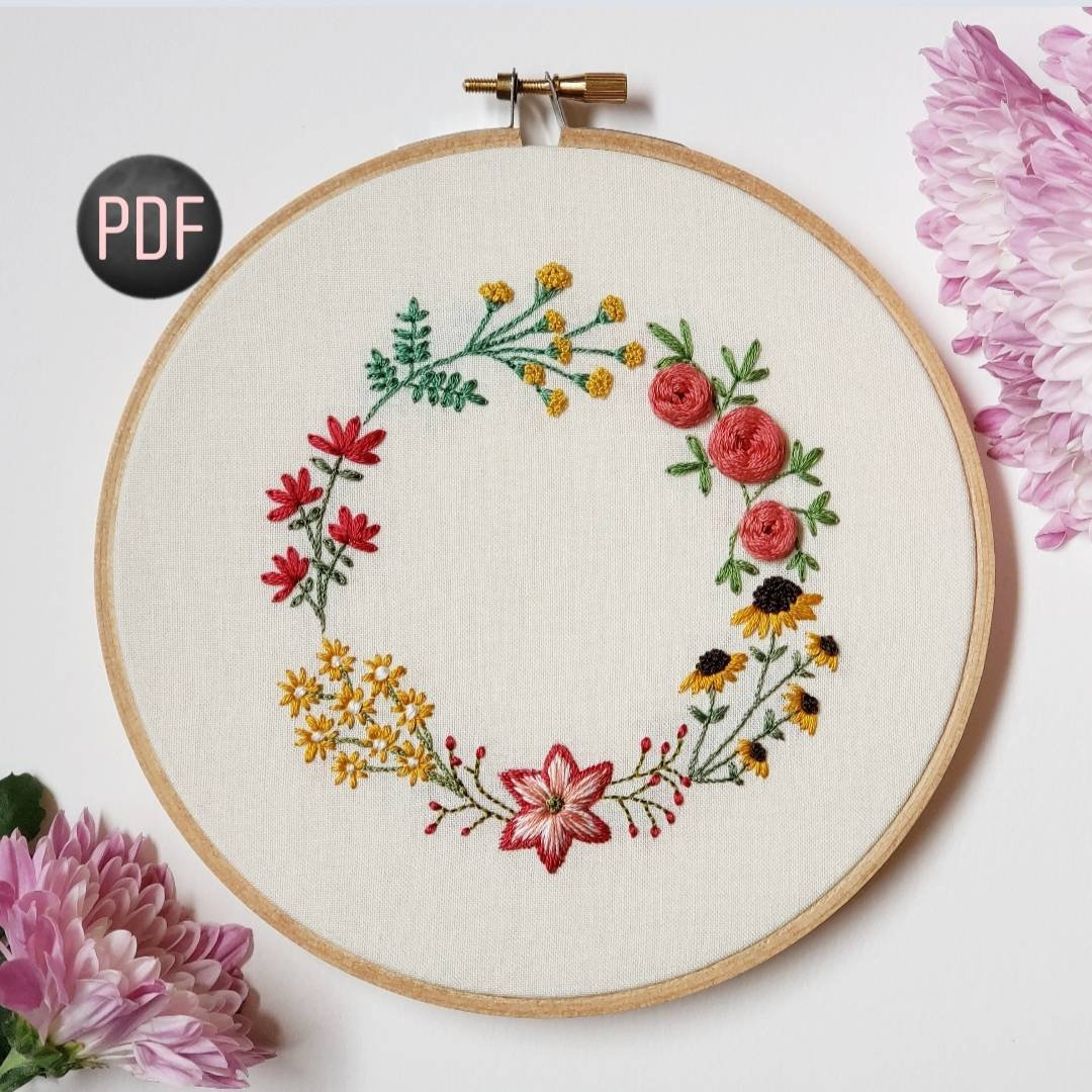 Embroidery Flower Pattern Spring Wreath Hand Embroidery Pattern