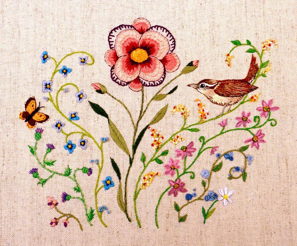 Embroidery Flower Pattern Hand Embroidery Botanical Patterns Embroidered Flower Plant Leaf Bird Design Easy Stitch Tutorial Embroider Gifts Handmade Home Decor