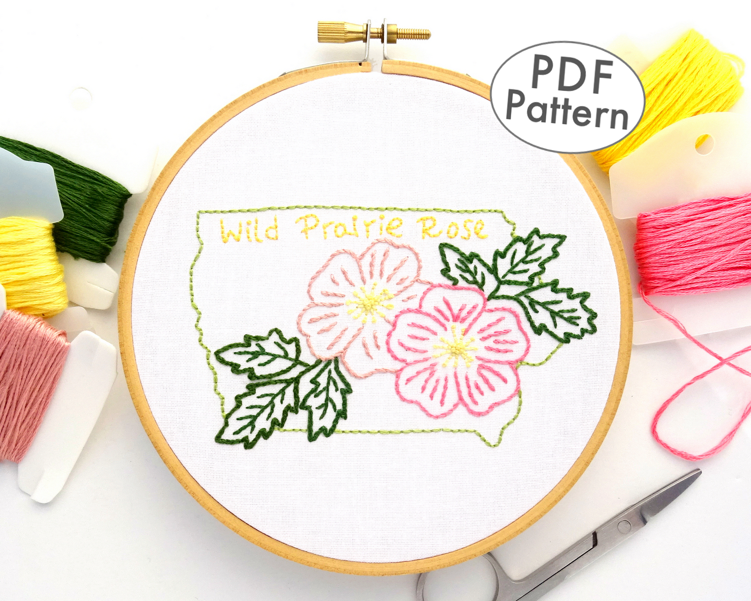Embroidery Flower Pattern Iowa Flower Hand Embroidery Pattern Wild Prairie Rose