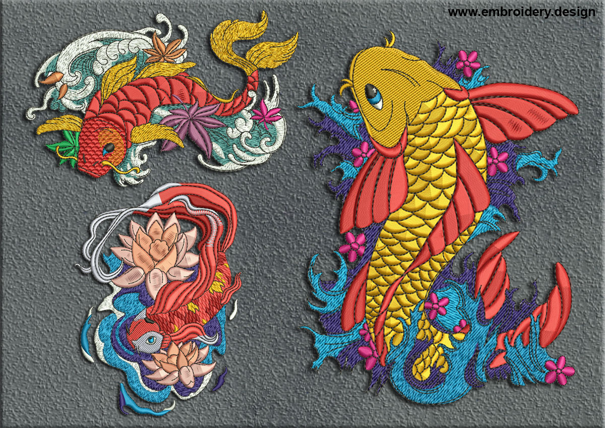 Fish Embroidery Patterns Koi Carps On The Waves Embroidery Designs Pack