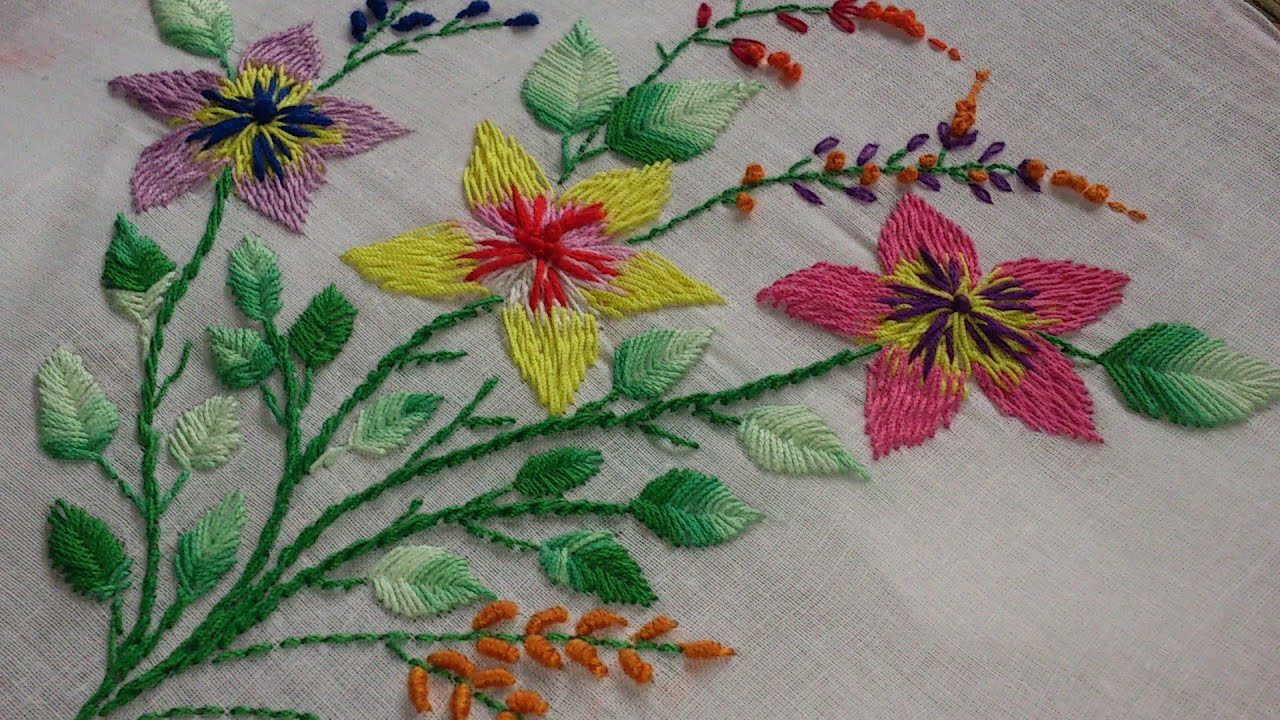 Fish Embroidery Patterns Hand Embroidery Designs Embroidery Stitches Tutorial Romanian Stitch Flowers And Fish Bone Leaves