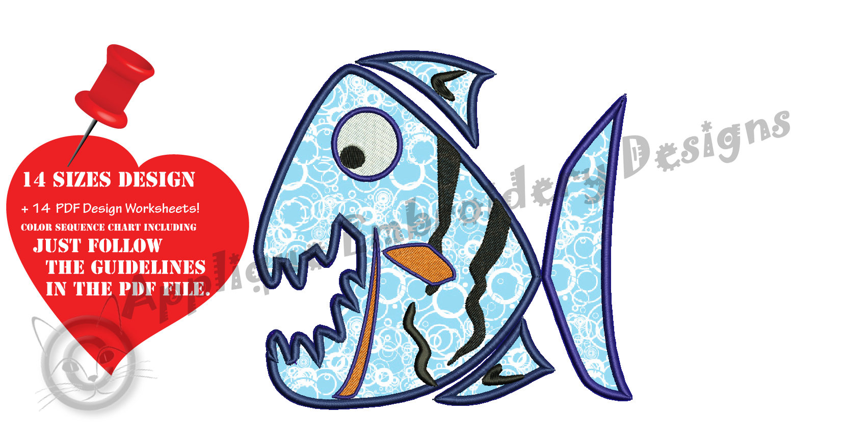 Fish Embroidery Patterns Piranha Fish Embroidery Applique Design Sea Life Applique Fish Applique Patterns Instant Download Pes