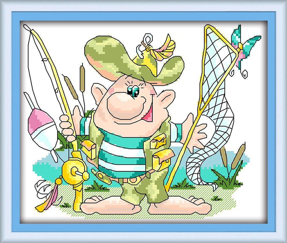 Fish Embroidery Patterns Us 379 5 Offfishing Talent Cross Stitch Kit Cartoon People Fish Aida 11ct 14ct 18ct Count Pattern Embroidery Diy Handmade Needlework Plus In
