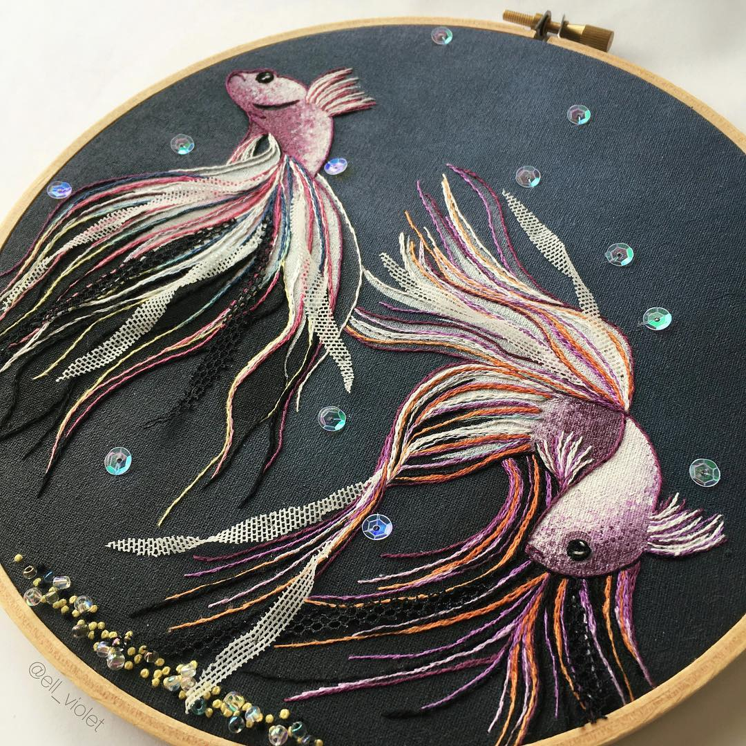 Fish Embroidery Patterns Betta Fish Hand Embroidery Pattern Betta Minor Smaller Siamese Fighting Fish Pdf