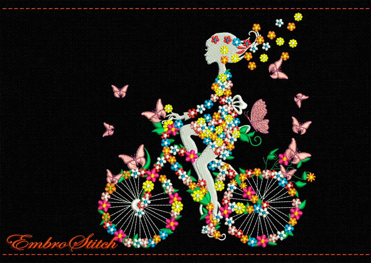Tattoo Embroidery Patterns Biking Flower Girl Embroidery Design 2 Sizes