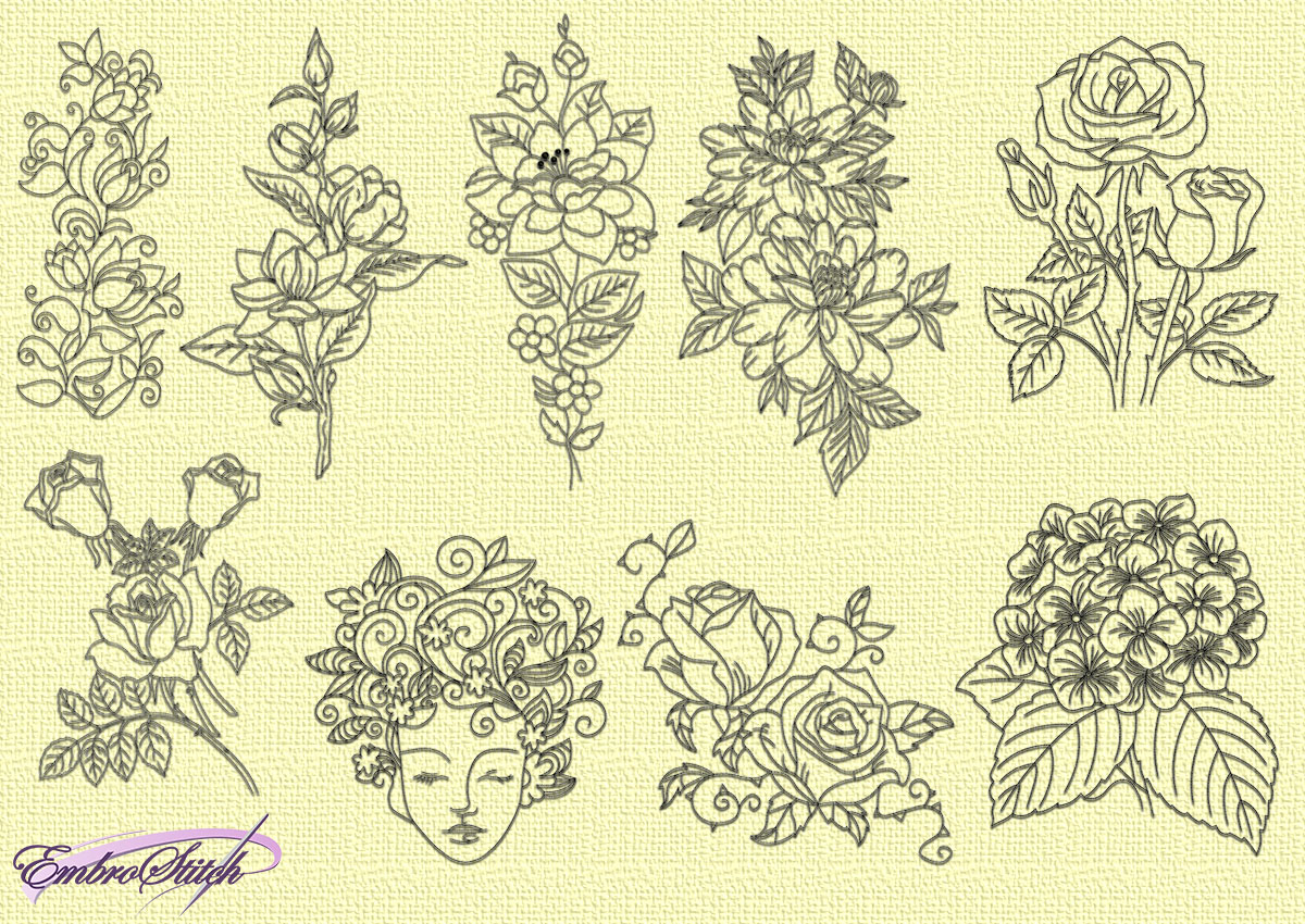 Flower Embroidery Pattern Various Flowers Embroidery Designs Pack 9 Qty Flower Embroidery Pattern Various Flowers Embroidery Designs Pack 9 Qty