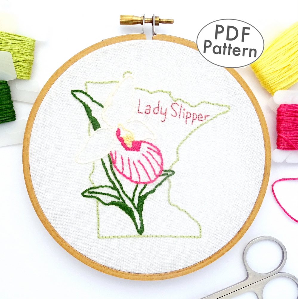 Flower Embroidery Pattern Minnesota Flower Hand Embroidery Pattern Lady Slipper Flower Embroidery Pattern Minnesota Flower Hand Embroidery Pattern Lady Slipper