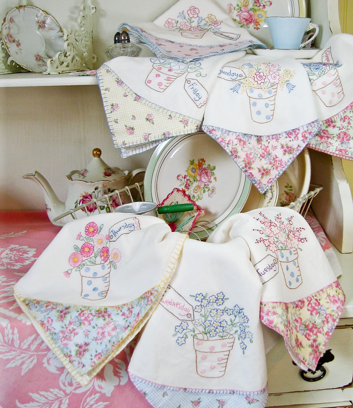 Flower Embroidery Pattern Cottage Flower Pot Tea Towels Flower Embroidery Pattern Cottage Flower Pot Tea Towels