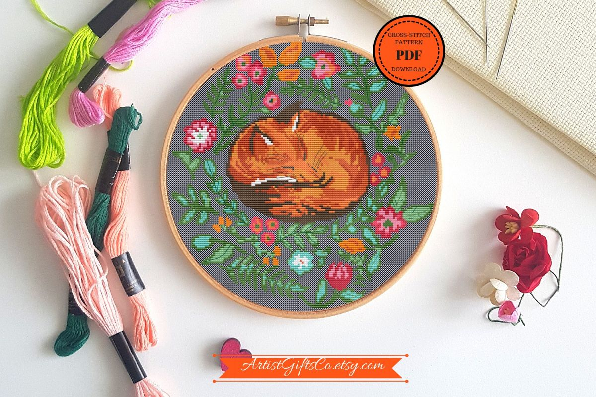 Fox Embroidery Pattern Sleepy Fox Modern Cross Stitch Embroidery Pattern For Animal Lovers Fox Embroidery Pattern Sleepy Fox Modern Cross Stitch Embroidery Pattern For Animal Lovers