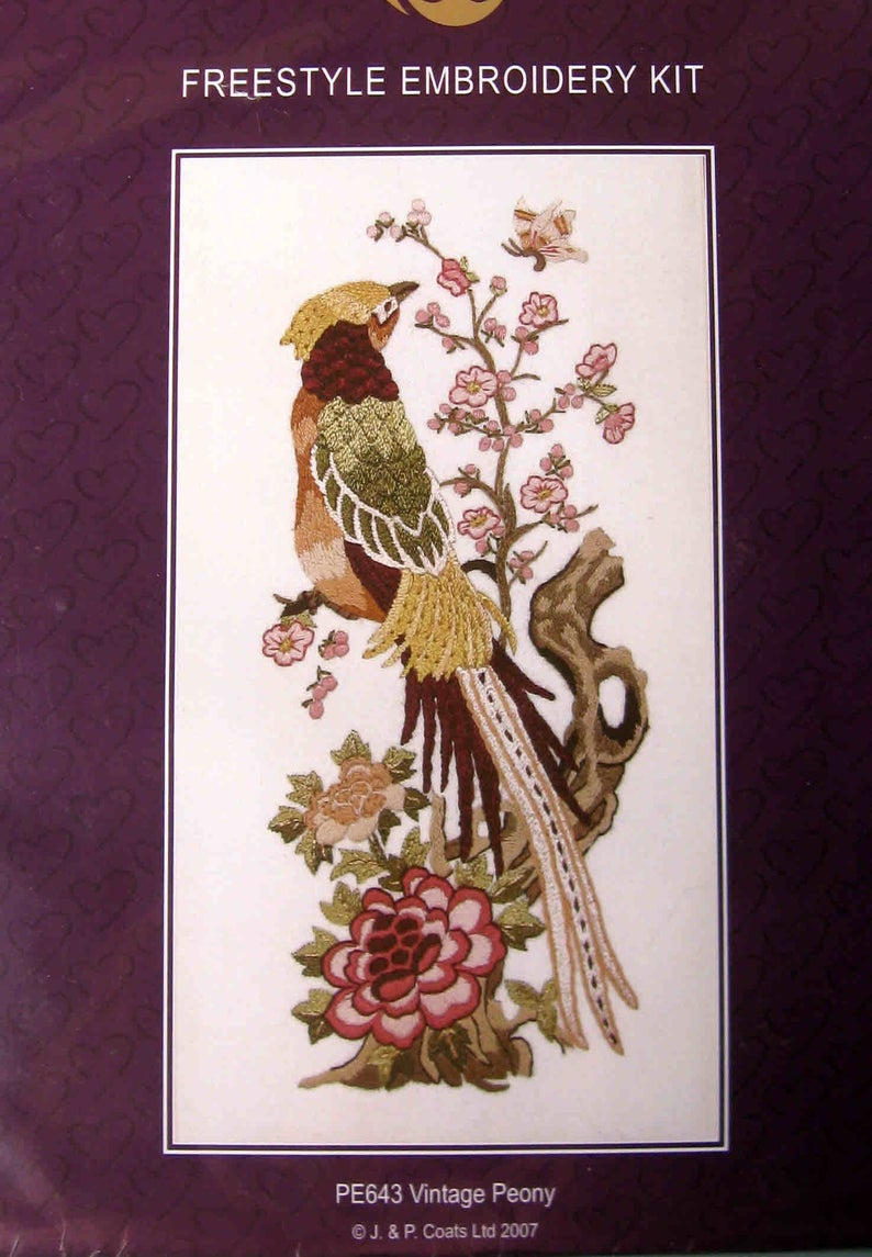 Free Crewel Embroidery Patterns Vintage Peony Bird Anchor Free Style Embroidery Kit Oriental Peony And Pheasant Bird Crewel Embroidery Kit Asian Design