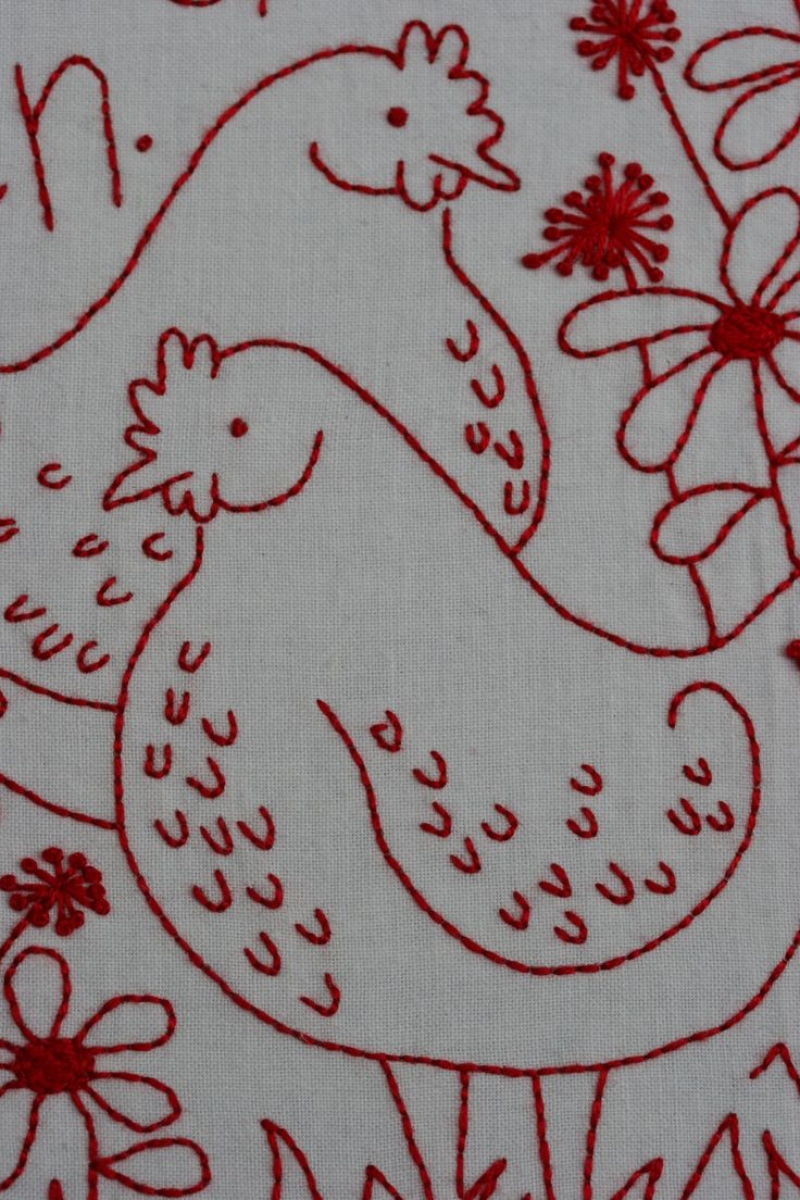 Free Redwork Embroidery Patterns Redwork Chicken Tea Towel With Free Pattern
