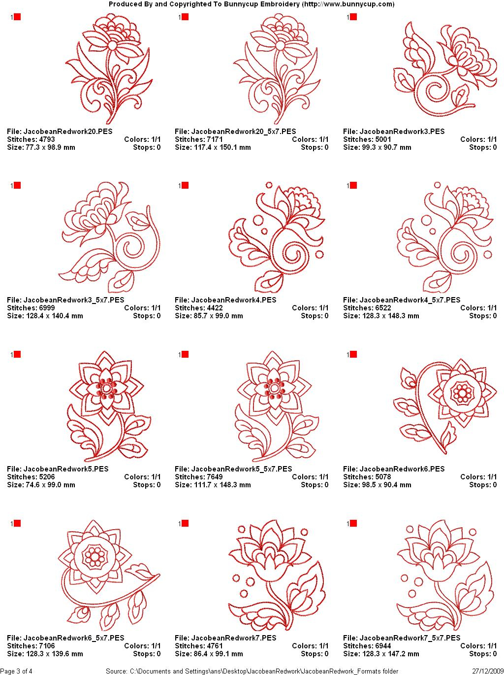 Free Redwork Embroidery Patterns Jacobean Redwork Embroidery Designs Bunnycup Embroidery