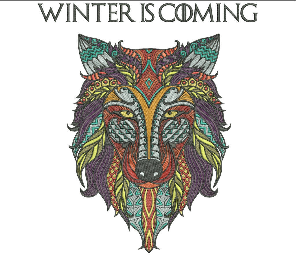 Game Of Thrones Embroidery Patterns Zentangle Wolf Design Winter Is Coming Game Of Thrones 10in Tall Embroider On Jackets Or Frame It