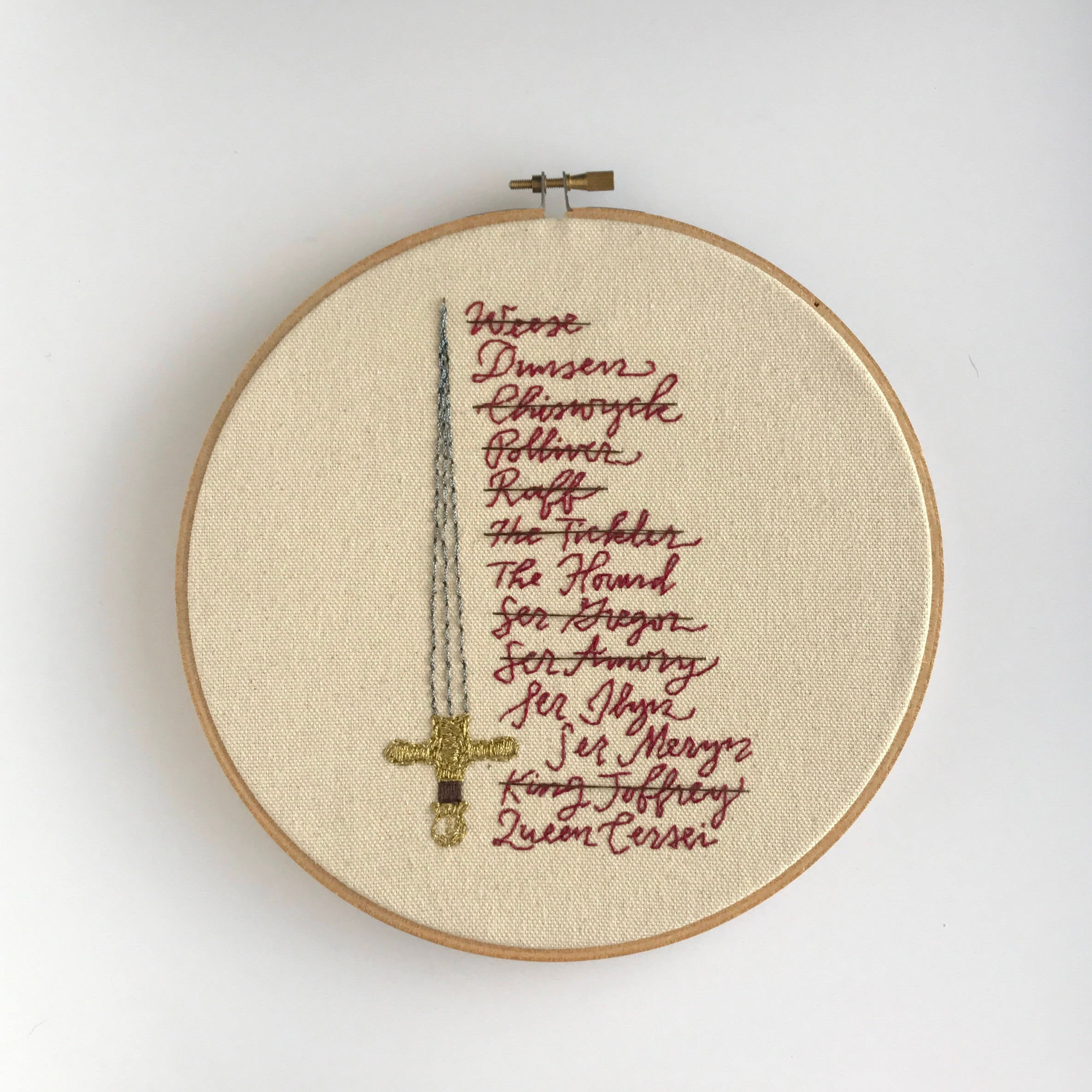 Game Of Thrones Embroidery Patterns A Game Of Thrones Embroidery Hoop In Honor Of Brienne Of Tarth Sewing
