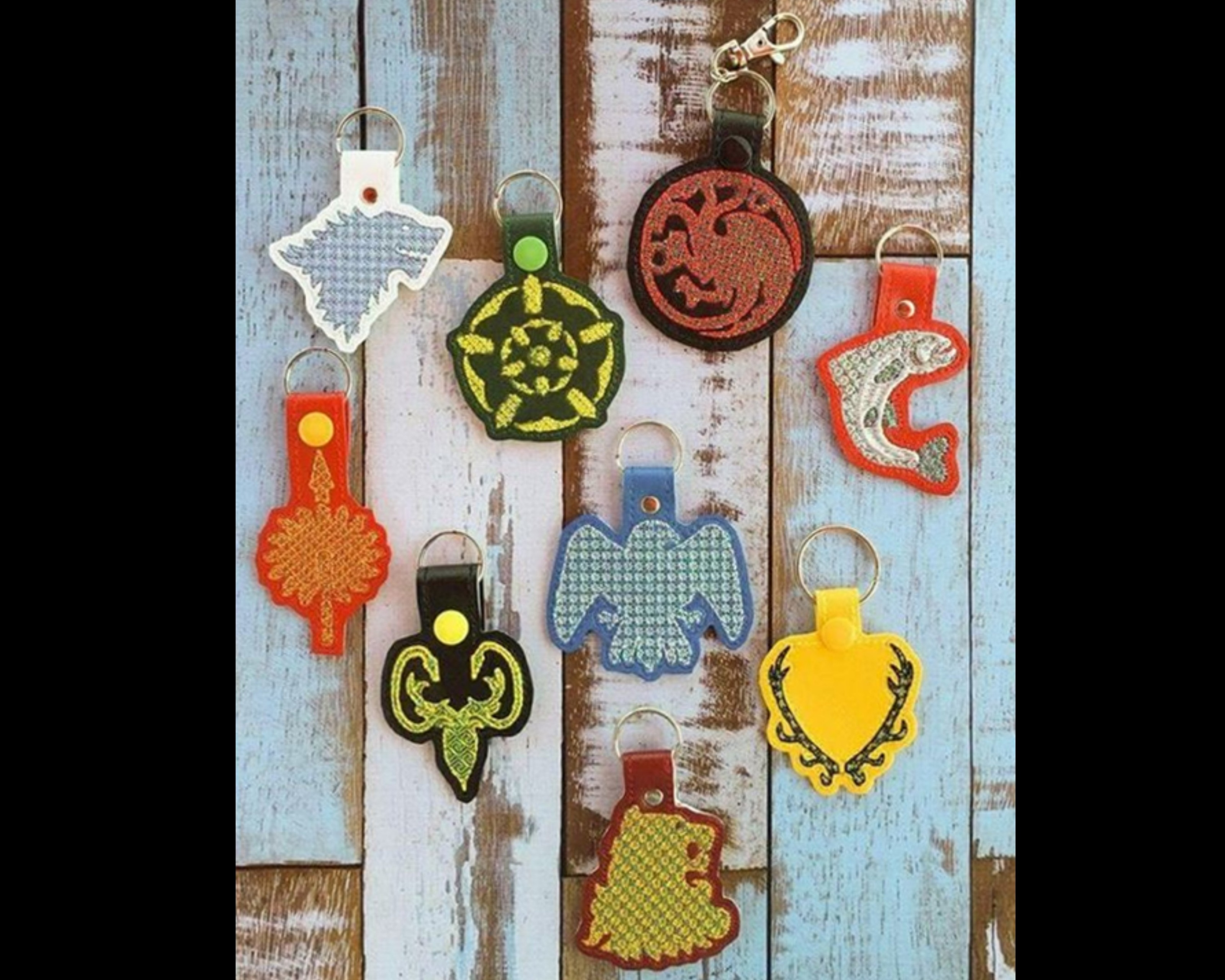 Game Of Thrones Embroidery Patterns Game Of Thrones House Crests Key Fobs Set Of 9 Mylar Designs Machine Embroidery Patterns