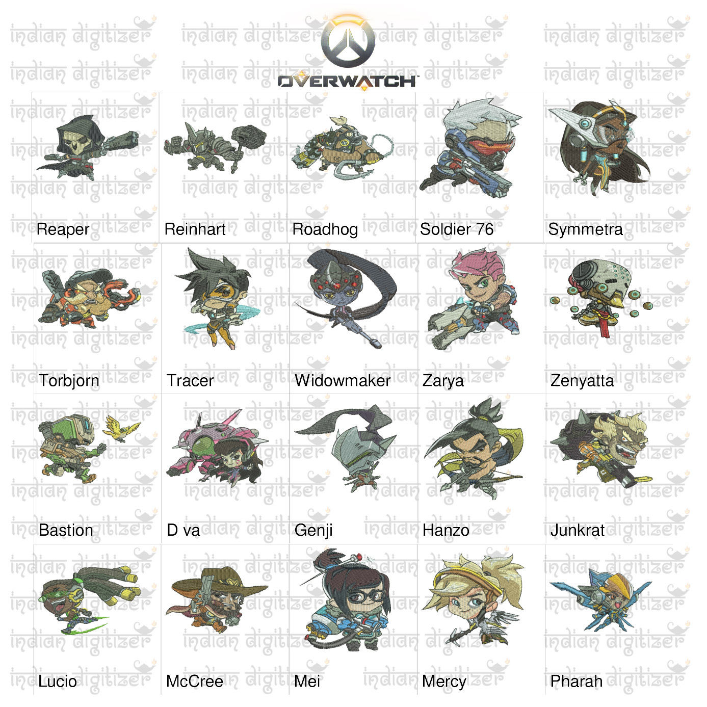 Indian Embroidery Patterns & Design 50 Off Overwatch Embroidery Designs 20 Individual Characters For 4x4in Hoop Resizable With Freely Downloadable Software