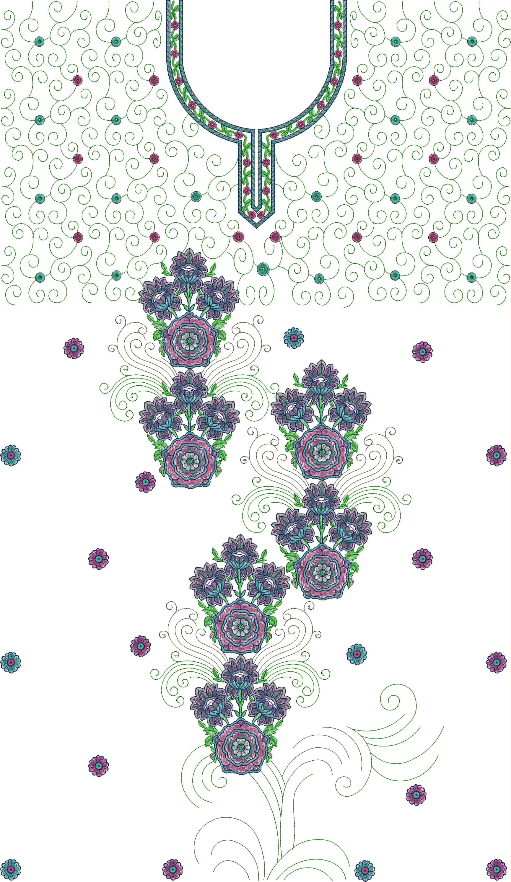 Indian Embroidery Patterns & Design Floral Print Blouse Pattern Neck Flower Embroidery Pattern Vector