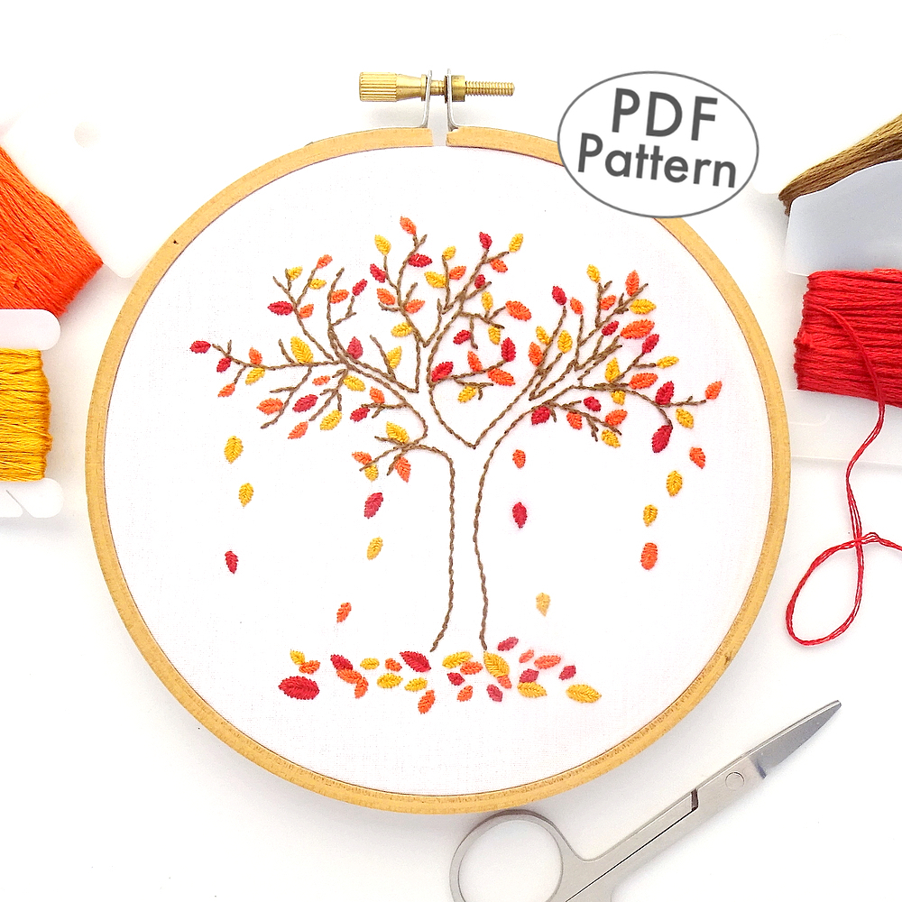 Hand Embroidery Pattern Autumn Tree Hand Embroidery Pattern