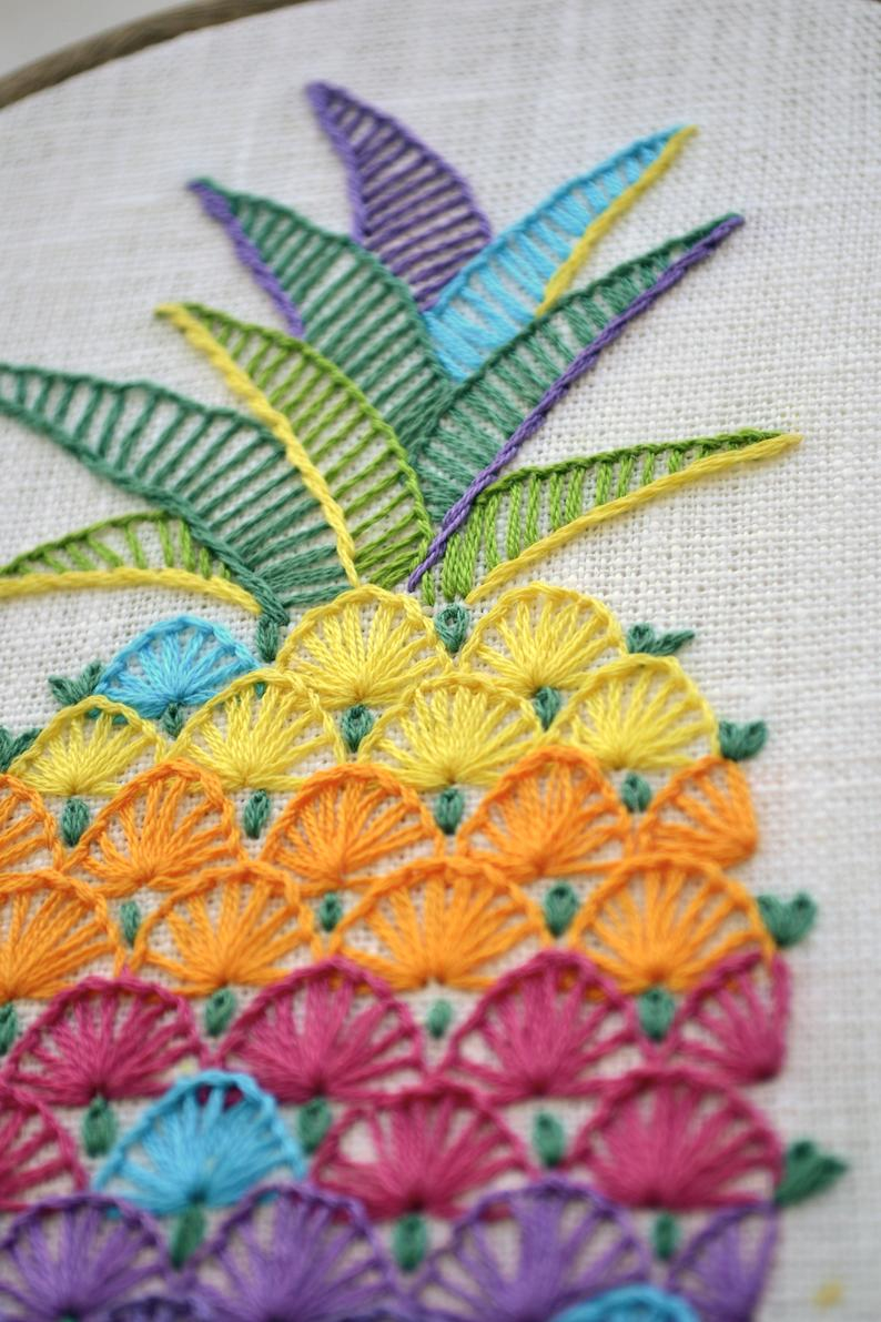 Hand Embroidery Pattern Embroidery Pattern Hand Embroidery Pattern Pdf Pineapple Embroidery Tropical Embroidery Design Naiveneedle