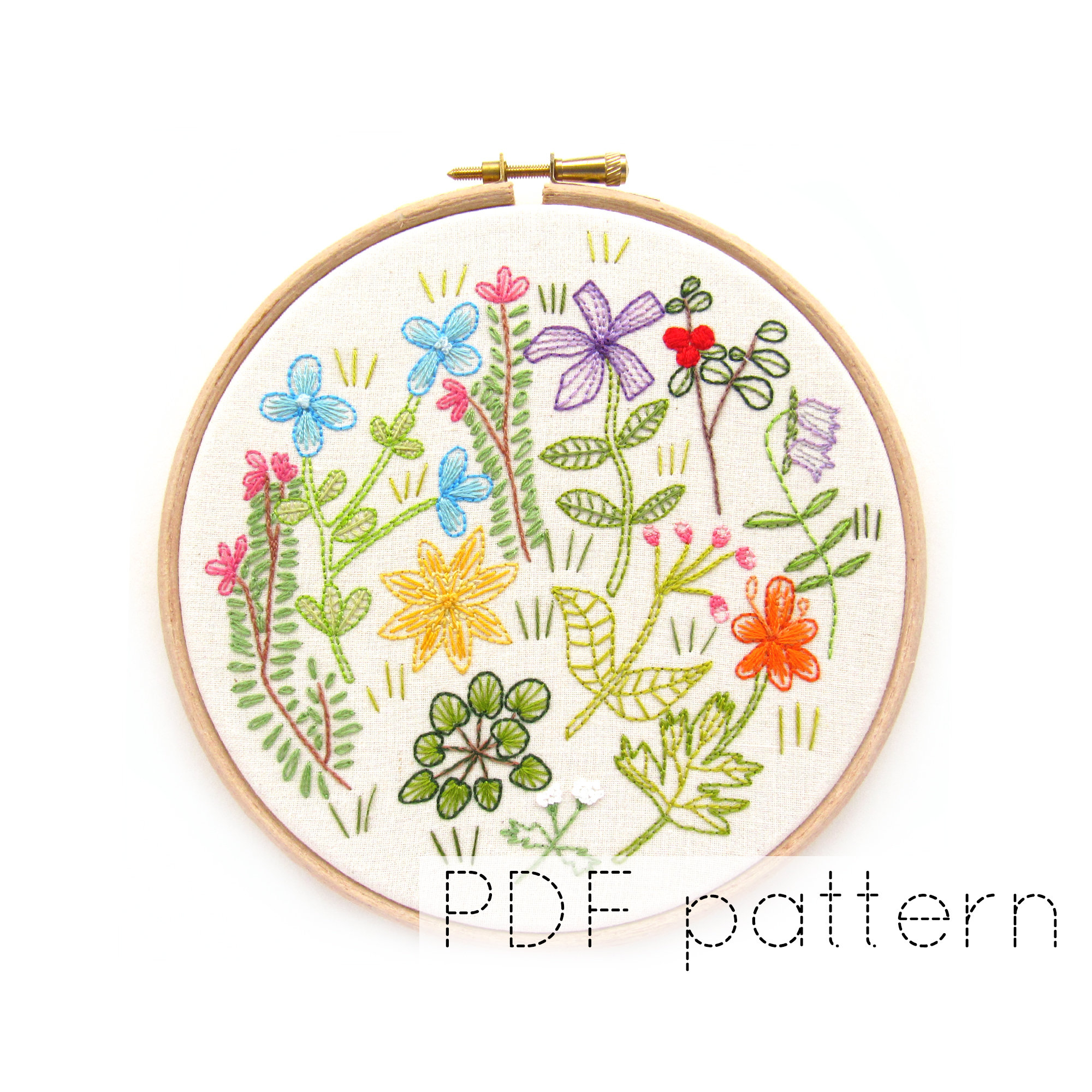 Hand Embroidery Pattern Wildflower Embroidery Pattern Pdf Instant Download Hand Embroidery Hoop Art Pattern