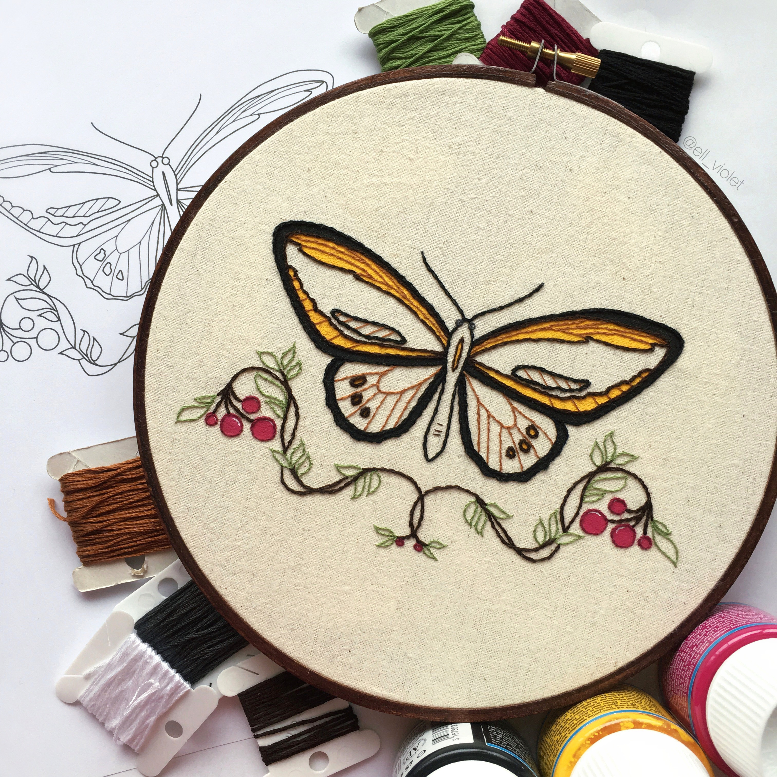 Hand Embroidery Pattern Birdwing Butterfly Beginner Hand Embroidery Pattern