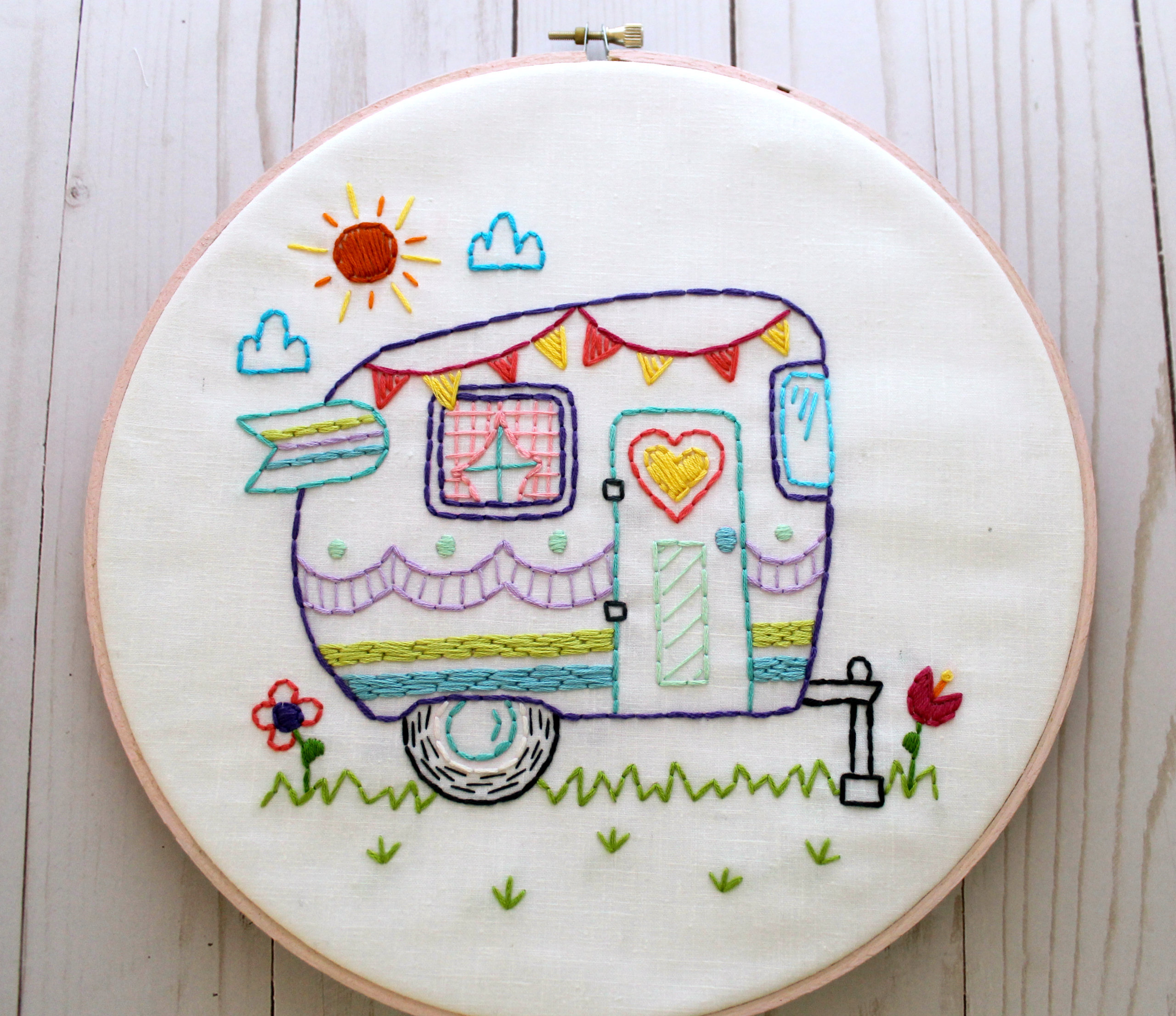 Hand Embroidery Pattern Retro Camper Hand Embroidery Pattern Pdf Pattern Summer Camping Travel Road Trip Embroidery Designs Vintage Camper Happy Camper