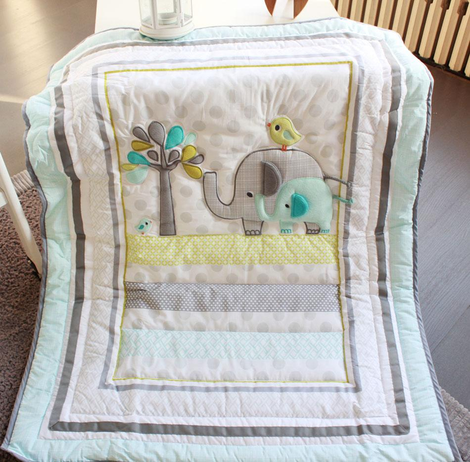 Hand Embroidery Patterns For Baby Quilts Wholesale 2016 7pcs Ba Bedding Set Embroidery 3d Elephant Bird Crib Bedding Set Include Quilt Bed Skirt Quilt Bumper Cot Bedding Set
