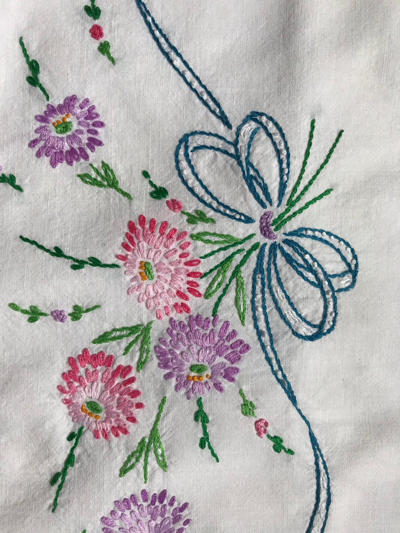 Hand Embroidery Patterns For Pillowcases Vintage Hand Embroidered Pillowcase Pair Pink And Purple Flowers Hand Embroidery Patterns For Pillowcases Vintage Hand Embroidered Pillowcase Pair Pink And Purple Flowers