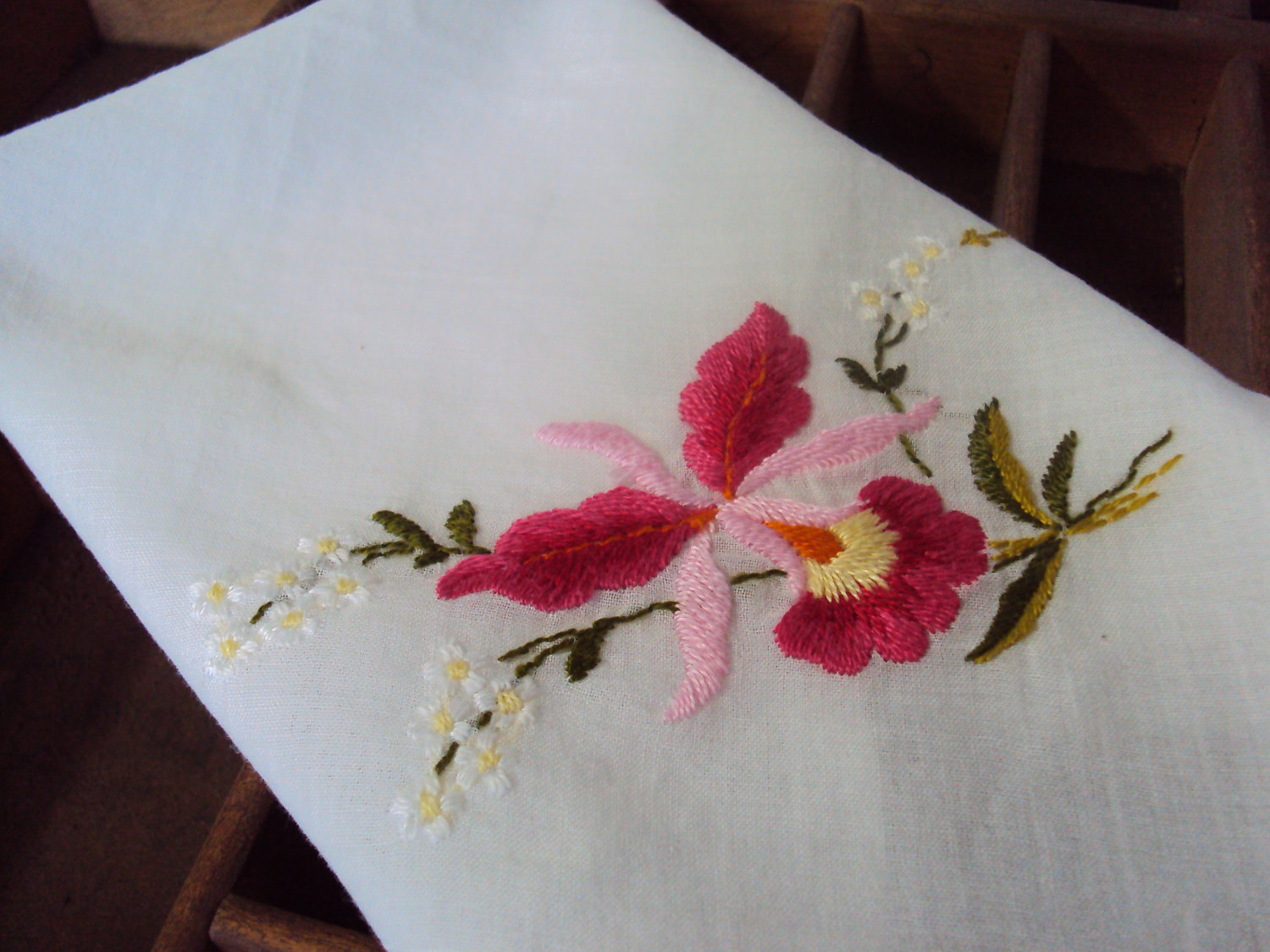 Handkerchief Embroidery Patterns Fantastic Embroidered Linen Handkerchief Floral Pattern Corners Tiny Flowers Cotton Collectible Display Cottage Shab Chic